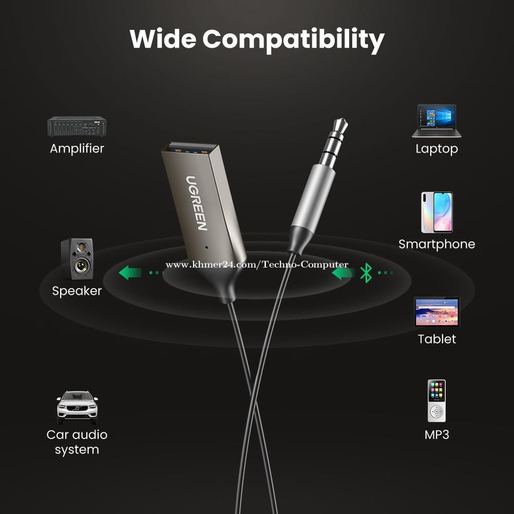 អាចប្រើជាមួយម៉ាញ់ែឡាន ឬ ធុងបាស់ ឬ speaker ដែលមានរុន្ធដោយកាស់ 3.5mm សំលេងច្បាស់មិនទាក់ៗ UGREEN Bluetooth Car Adapter with Premium Quality Sound Transform your home or car audio system to Bluetooth wireless, the world's tiniest music receiver, and stream crisp, high- quality music from your smartphone or tablet. Talk With Clarity Hands-free calling with the built-in microphone makes catching up with friends a breeze. Operation Guide 1. Connect the Audio port with a 3.5 mm AUX plug. 2. Connect the power port with a USB plug. 3. Turn on the Bluetooth in your cell phone, then click to pair, which allows you to enjoy your music wirelessly. Broad compatibility: Bluetooth devices: smartphones / tablets / laptops Audio devices: car radio / home stereo system *Function: music play and hands-free call *Connect 2 Devices at One Time *Bluetooth Version: 5.0 *Connect the USB and AUX together when use *Bluetooth Protocol: A2DP/HFP *Support SBC/AAC *Frequency range:2.402GHz-2.480GHz *Frequency Response: 20Hz-20kHz *Output Power: 740mVrms, RL=16Ω *SNR(Signal to Noise Ratio):>90dB Buy now via Telegram https://t.me/TechnoComputer2 or messenger https://m.me/TechnoComputer2 or call 081518xxxClick To Call Delivery within Phnom Penh less than 30min Technical support and customer satisfaction are our top priority!