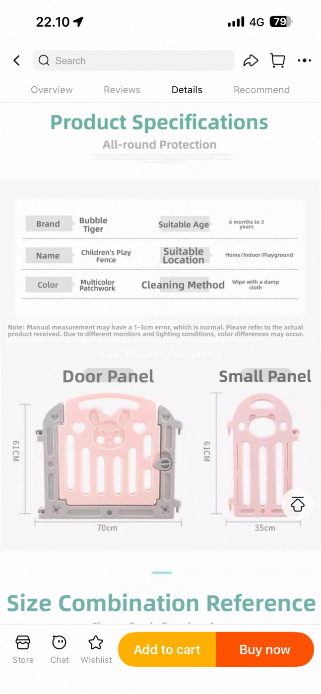Height 61 cm Have door locking system from outside 16 panels + 1 door + 1 toys bar Good condition like new 99%