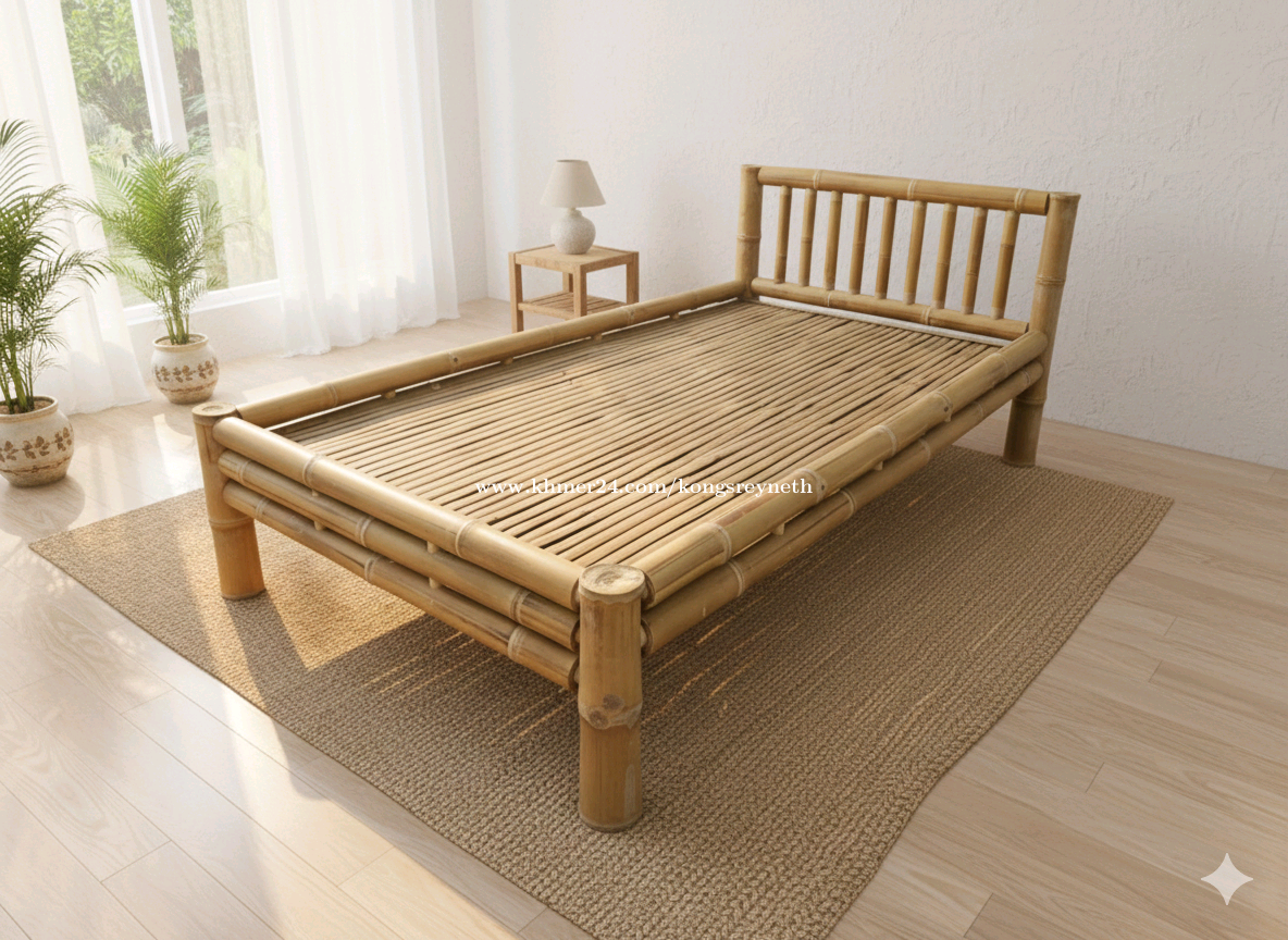 Natural bamboo bed for sale - minimal design, maximum comfort. L : 200cm W : 100cm H : 80cm