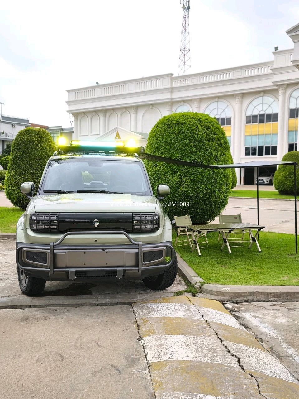 Ev range 501km。 行李架带射灯,ធ្នើរដាក់វ៉ាលីលើដំបូលបំពាក់អំពូល 前后护杠,កាងខាងមុខនិងក្រោយ 侧书包侧爬梯,侧帐篷 កាបូបនិងជណ្តើរជំហៀង ,តង់ជំហៀង 后挂书包 工兵铲 កាបូបក្រោយ ឧបករណ៍ប៉ែល 升级高级避震,AT轮胎 បូមសេរីខ្ពស់, សម្បកកង់AT 501km 续航能力,540°全景影像+全透明可视地盘。កម្លាំងជិះបានចម្ងាយ501km កាមេរ៉ាជុំវិញ540° +ថ្លាច្បាស់ឃើញដល់បាតក្រោម 路虎款式脚踏板。 赠送 脚垫,3M品牌Uv膜,透明保护车衣。 ថែមជូន កម្រាលជើង, បិតUVម៉ាក3M, បិតស្កុតថ្លាមួយជុំ