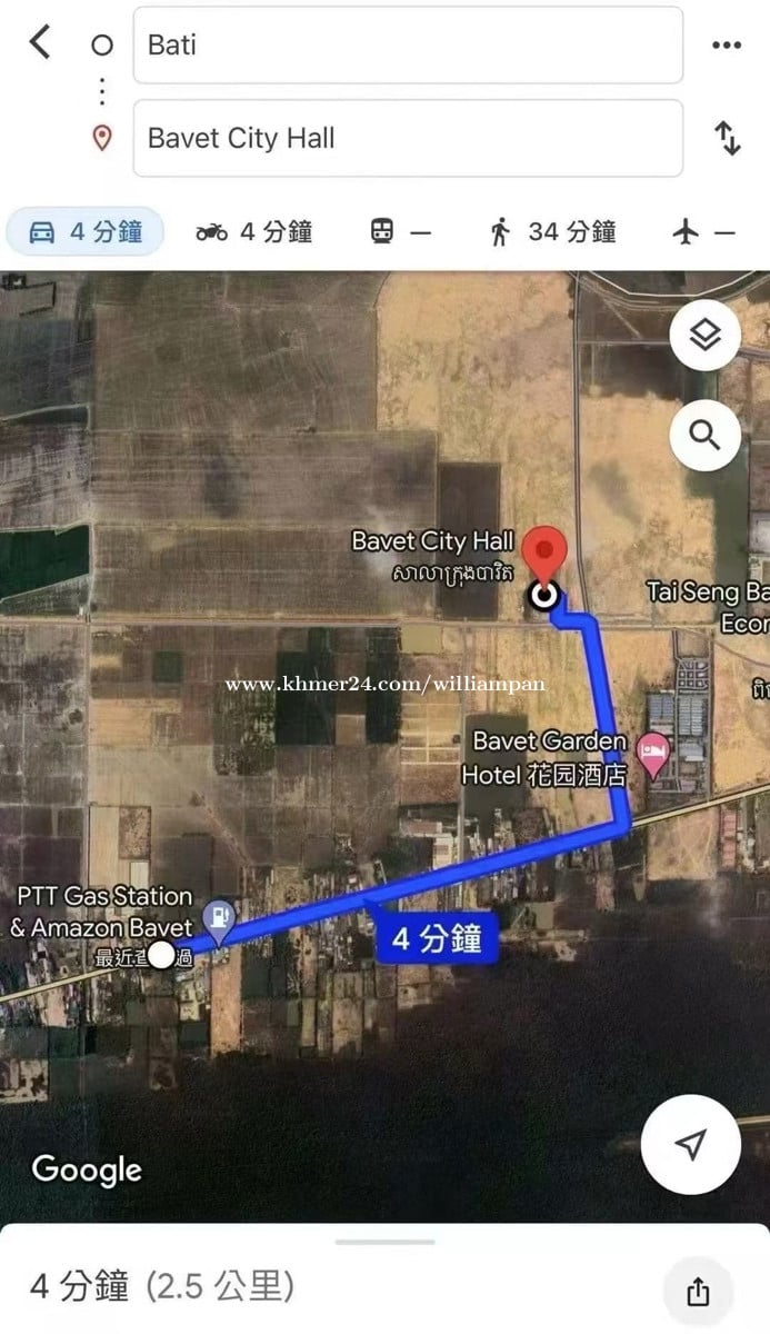 Land for Rent Svay Rieng Province, Bavet City On Road No. 1, 158km Near Bavet City Hall Next to PTT gas station Total area: 9092 square meters Sale price: 120$/square meter Monthly rent: 2000$/month Location on Google Maps: https://maps.app.goo.gl/GHtMnbnPTpCakGMe9?g_st=ic Tel: 081496xxxClick To Call WeChat ID: darnellpan Telegram: https://t.me/NobleClub —————————————————— 土地·出售 或 出租 柴楨省·巴域市(木牌)Bavet 1號公路上。158km処 近巴域市政府 PTT加油站旁 總面積:9092平方米 售價:120$/平方米 月租:2000$/month 谷歌地圖上的位置: https://maps.app.goo.gl/GHtMnbnPTpCakGMe9?g_st=ic 電話:081496xxxClick To Call 微信號:darnellpan 紙飛機: https://t.me/NobleClub
