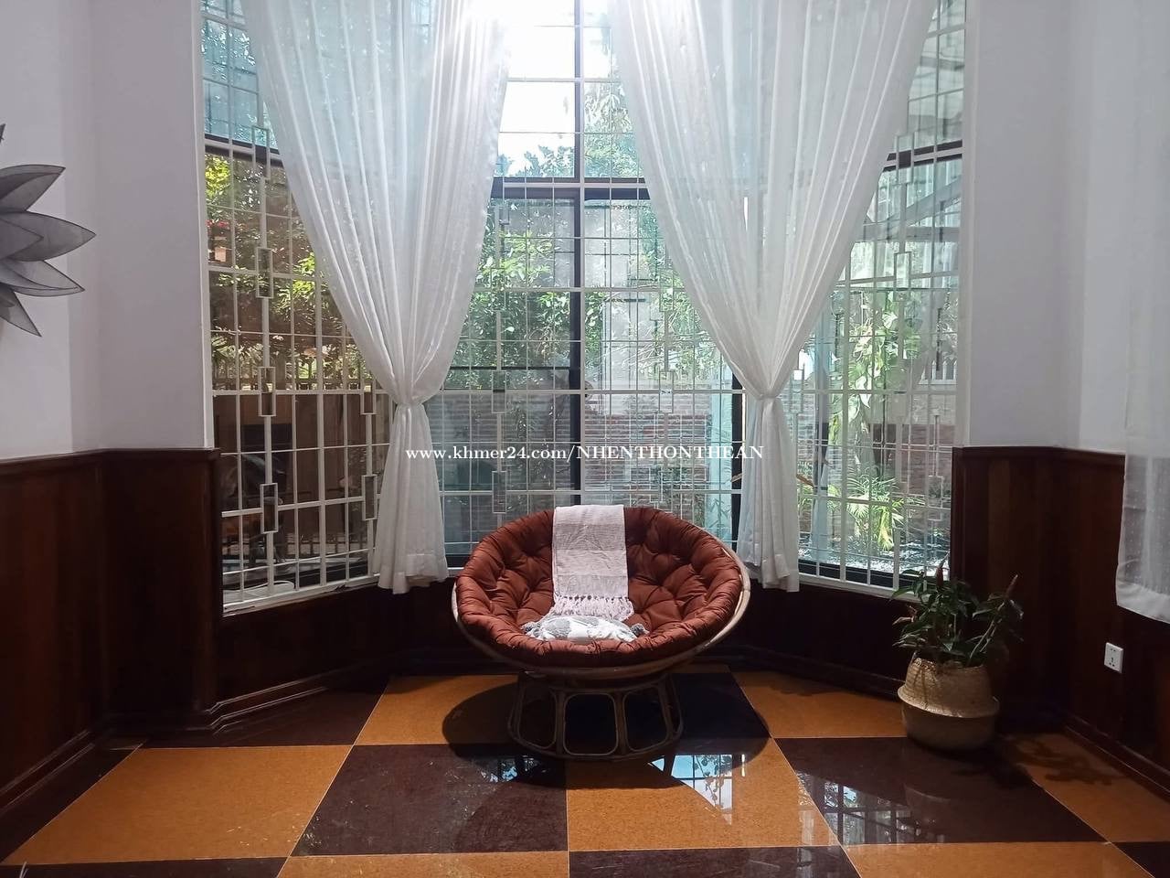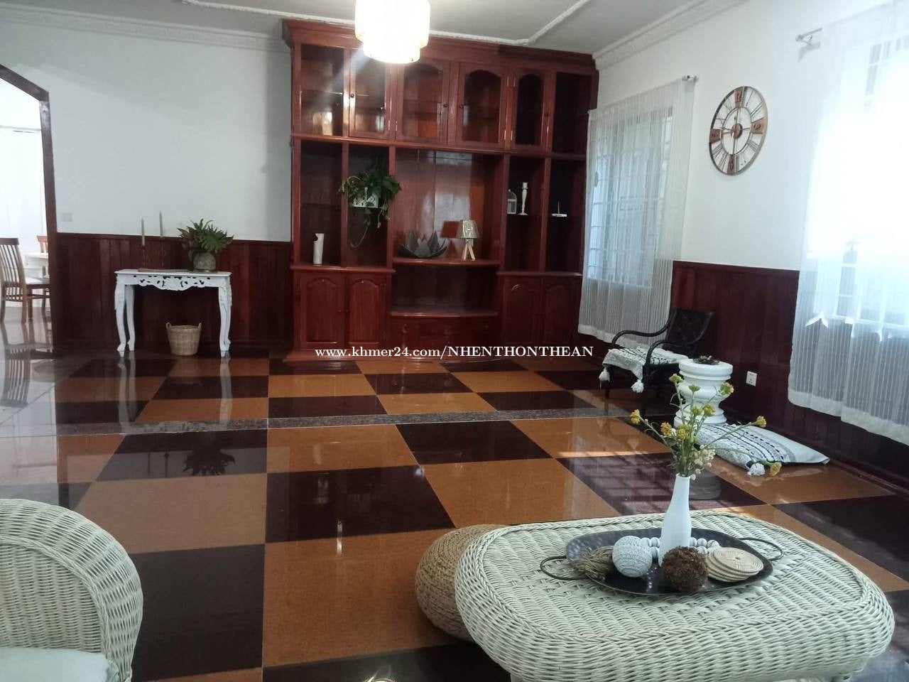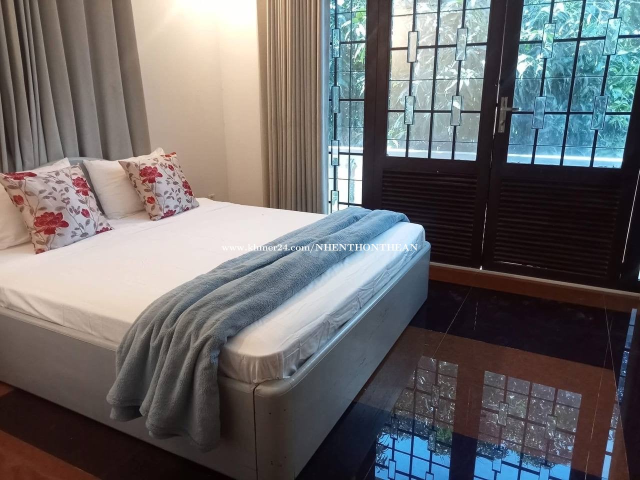 House For Rent At Chroy ChongVar Price: $1200 per month Bedroom:03 plus 1 office Bathroom:04 Furniture: fully furnished It is very good for living and office safe area no flooding.