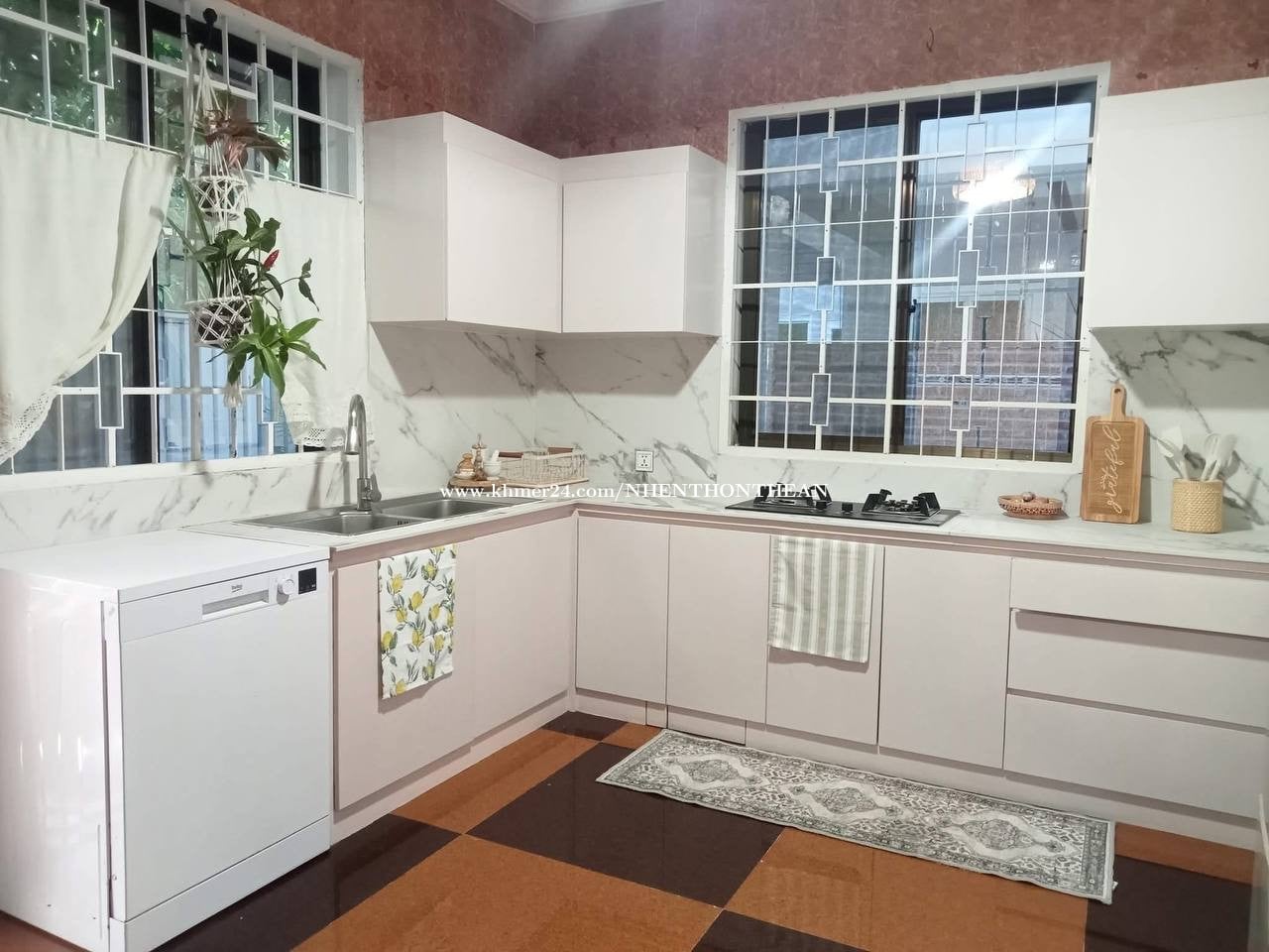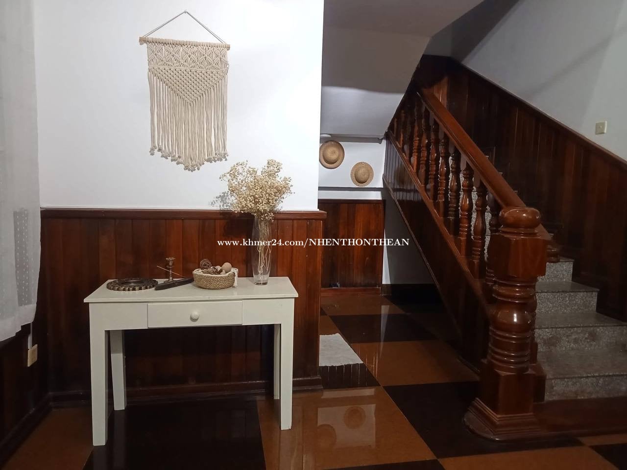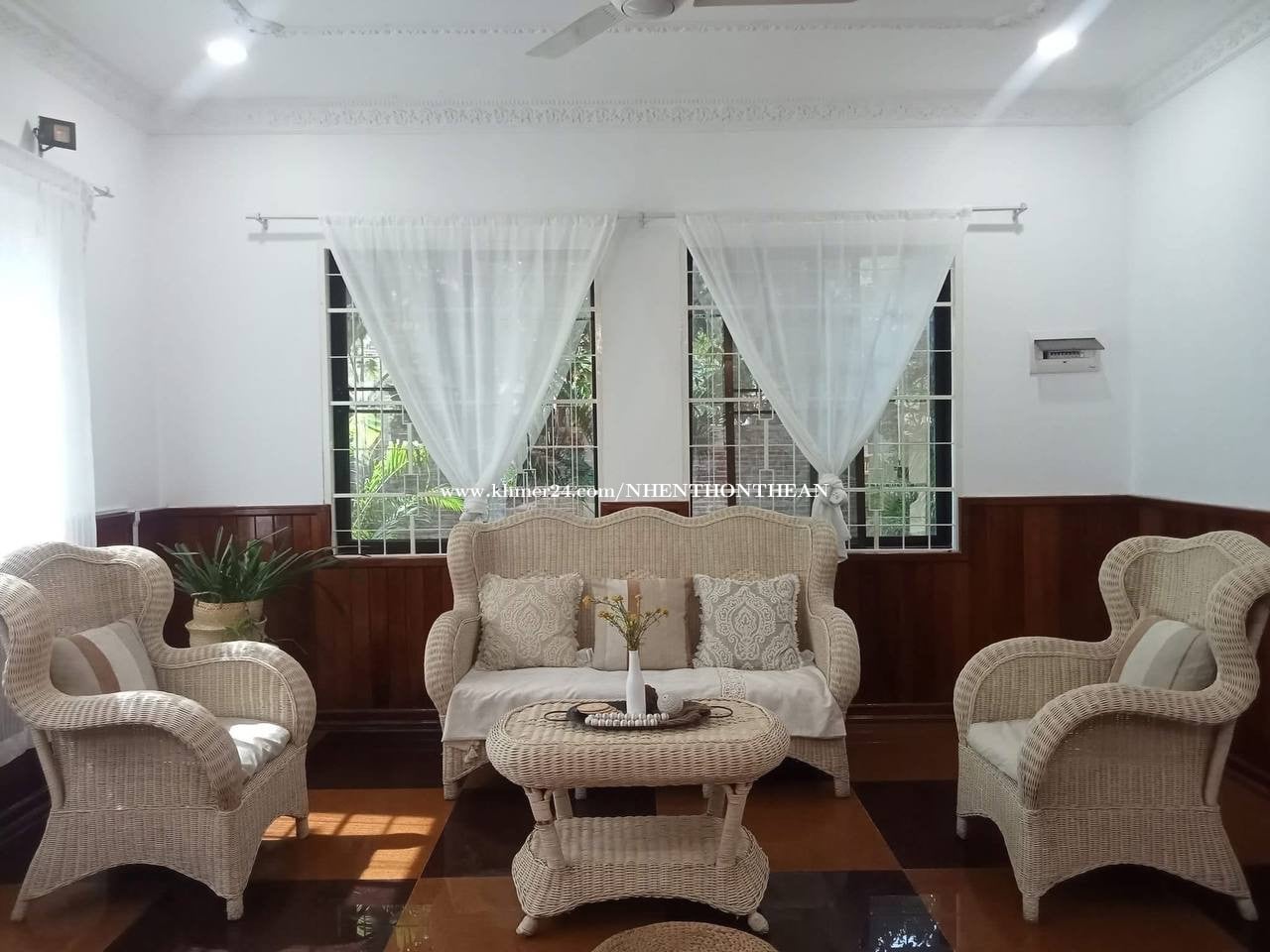 House For Rent At Chroy ChongVar Price: $1200 per month Bedroom:03 plus 1 office Bathroom:04 Furniture: fully furnished It is very good for living and office safe area no flooding.