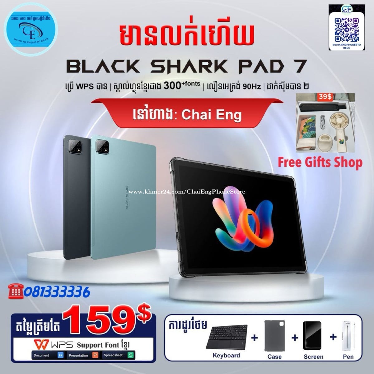 ⚡️Black Shark Pad 7 - អេក្រង់ធំ ច្បាស់ត្រជាក់ភ្នែក សម្រាប់លេងហ្គេម ការងារ និងកម្សាន្ត📱📖 💥តម្លៃ $159.00 (ធានា1ឆ្នាំ) 🎁 ថែមជូនCase + Screen + Bluetooth Keyboard + ប៊ិច Pen #tabletសម្រាប់ការងារ 🔥 ថែមជូនពីហាងផ្ទាល់ជាមួយនឹងកញ្ចប់ការដូពិសេស១ប្រអប់ធំ🎁 👉 លក្ខណៈពិសេស ✅ ដាក់ស៊ីមបាន 2, RAM 6 GB + Storage 128GB ✅ អេក្រង់ធំ 11 អ៊ីង Full HD+, ពន្លឺ 420 nits ✅ លឿនអេក្រង់ 90Hz ✅ ប្រព័ន្ធដំណើរការឈីប MediaTek Helio G88 ✅ ថ្មធំ 7700mAh ល្បឿនសាក 18W ✅ Speaker ២គ្រប់ សម្លេងច្បាស់ ✅ Camera៖ កាមេរ៉ាមុខ 5MP / កាមេរ៉ាក្រោយ 13MP ✅ មុខងារ Split Screen : បំបែកអេក្រង់ ប្រើបានពីរកម្មវិធីក្នុងពេលតែមួយ ✅ ប្រព័ន្ធប្រតិបត្តិការ៖ Android 15 👉 ទិញក៏បាន | បង់រំលស់ក៏បាន | ប្រើVISA Cardក៏បាន 👉 មានបង់រំលស់តាម ACLYDA-BNPL & Aeon Bank & Amret MicroFinance 👉 មានសេវាកម្មដឹកជញ្ជូនដល់កន្លែងនិងផ្ញើរជូន25ខេត្តក្រុង សំរាប់ពត័មានបន្ថែមសូមទាក់ទងមកកាន់លេខទូរសព្ទ័ ☎️ 081 333336, 076 2333336, 017 226338, 067 226338 #ChaiEngPhoneShop #CE #ChaiEngPhoneStore2 #BlackSharkPad7 #BlackSharkCambodia #Tabletសមរាប់ហ្គេម #Tabletសមរាប់សិស្សនិស្សិត #Tabletសម្រាប់ការងារ