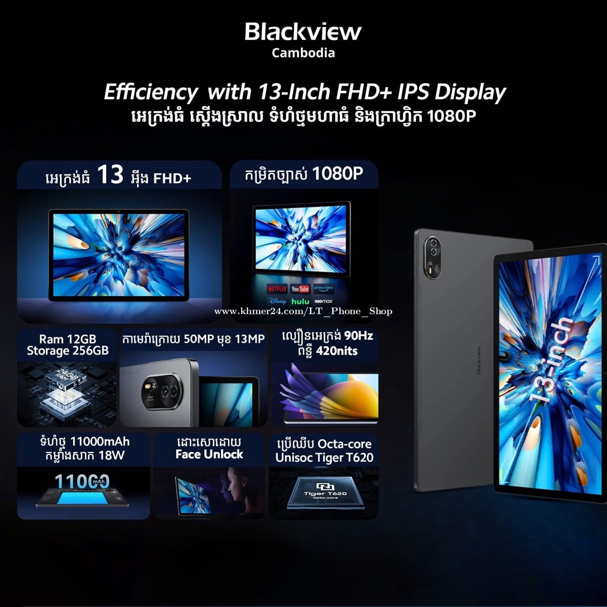 📱Blackview MEGA 8 – ថេប្លេតអេក្រង់ធំ 13-inch FHD+ សម្រាប់ ការងារ កម្សាន្ត ការសិក្សា និងភាពច្នៃប្រឌិត ជាមួយបច្ចេកវិទ្យា AI កម្រិតខ្ពស់! 😱💼 💥 (RAM 12GB + Storage 256GB) - តម្លៃ $249 បញ្ចុះតំលៃនៅសល់ត្រឹម $240 តែប៉ុណ្ណោះ 🛡 មានធានា 1 ឆ្នាំ 🎁នៅក្នុងប្រអប់មាន៖ ស្រោមការពារ + screen protector + pen 🎁ថែម៖ ប៊ិច Stylus pen + Keyboard ឬ Gaming Controller 🏡 ហាងលក់ទូរស័ព្ទដៃទំនើប អិលធី 📲 ទំនាក់ទំនងលេខទូរស័ព្ទ: 016711xxxClick To Call (Telegram) / 099333xxxClick To Call / 0888884xxxClick To Call 📩 Telegram: https://t.me/LTPhoneShop 📬 Facebook Page: https://www.facebook.com/share/165XEwR2ZA/?mibextid=wwXIfr 🗺️ ផ្ទះលេខ139c, ផ្លូវលេខ143 កែងផ្លូវលេខ376, សង្កាត់បឹងកេងកង3, ខណ្ឌបឹងកេងកង, រាជធានីភ្នំពេញ 📍Google map: https://maps.app.goo.gl/phENGCSAT33SaM9r7?g_st=com.google.maps.preview.copy 🛵 មានសេវាដឹកជញ្ជូនគ្រប់ខេត្តក្រុងរាជធានី