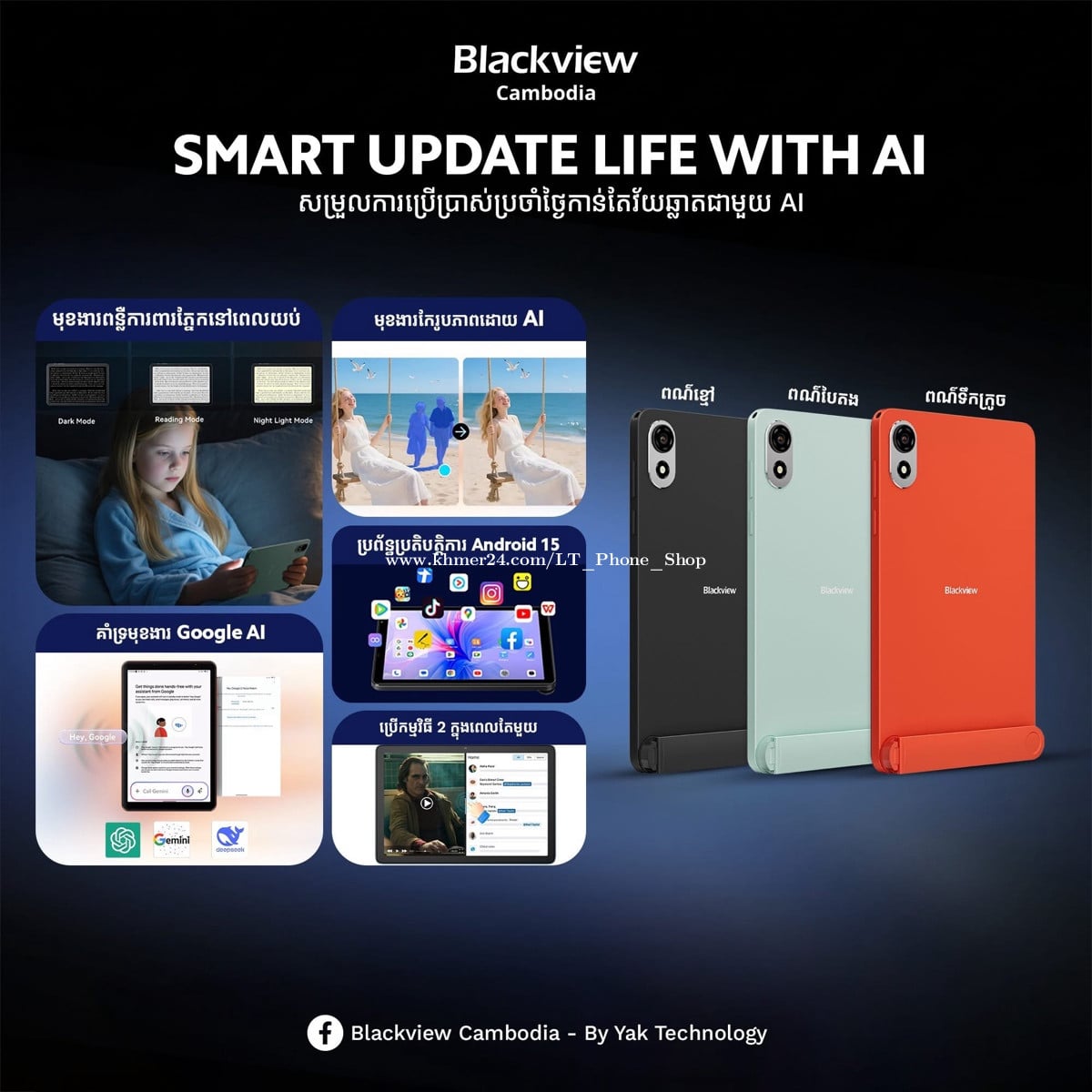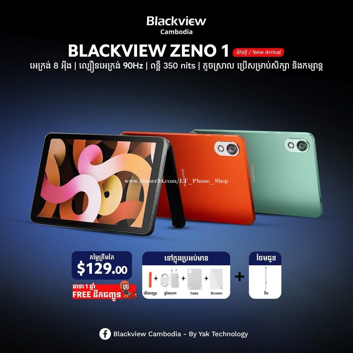✨Blackview Zeno 1 ទំហំតូចស្រាល ភ្ជាប់ជាមួយជើងទម្រ ល្បឿនអេក្រង់ 90Hz ដើររលូន ទំហំ Storage ធំដល់ 256GB📱អែមដាក់ឯកសារបានច្រើន👍 🛡️មានធានា ១ឆ្នាំ 💥តម្លៃ $129 បញ្ចុះតំលៃនៅសល់ត្រឹម $124$ តែប៉ុណ្ណោះ 🎁 ថែមជូន ប៊ិច Pen 👉លក្ខណៈពិសេស៖ ✅ ប្រើស៊ីម ២ ✅ អេក្រង់៖ 8 អ៊ីង HD, កម្រិតច្បាស់ 800×1280 pixels ✅ ល្បឿនអេក្រង់ 90Hz, ពន្លឺអេក្រង់ 350 nits ✅ ថ្ម៖ 6000mAh + សាកលឿន 10W ✅ Camera៖ កាមេរ៉ាមុខ 8MP / កាមេរ៉ាក្រោយ 8MP ✅ សម្លេងបាស ២ គ្រាប់ ✅ Memory៖ RAM 6GB (បន្ថែមដល់ 12GB) + Storage 256GB ✅ ភ្ជាប់ជាមួយជើងទ្រ 🏡 ហាងលក់ទូរស័ព្ទដៃទំនើប អិលធី 📲 ទំនាក់ទំនងលេខទូរស័ព្ទ: 016711xxxClick To Call (Telegram) / 099333xxxClick To Call / 0888884xxxClick To Call 📩 Telegram: https://t.me/LTPhoneShop 📬 Facebook Page: https://www.facebook.com/share/165XEwR2ZA/?mibextid=wwXIfr 🗺️ ផ្ទះលេខ139c, ផ្លូវលេខ143 កែងផ្លូវលេខ376, សង្កាត់បឹងកេងកង3, ខណ្ឌបឹងកេងកង, រាជធានីភ្នំពេញ 📍Google map: https://maps.app.goo.gl/phENGCSAT33SaM9r7?g_st=com.google.maps.preview.copy 🛵 មានសេវាដឹកជញ្ជូនគ្រប់ខេត្តក្រុងរាជធានី