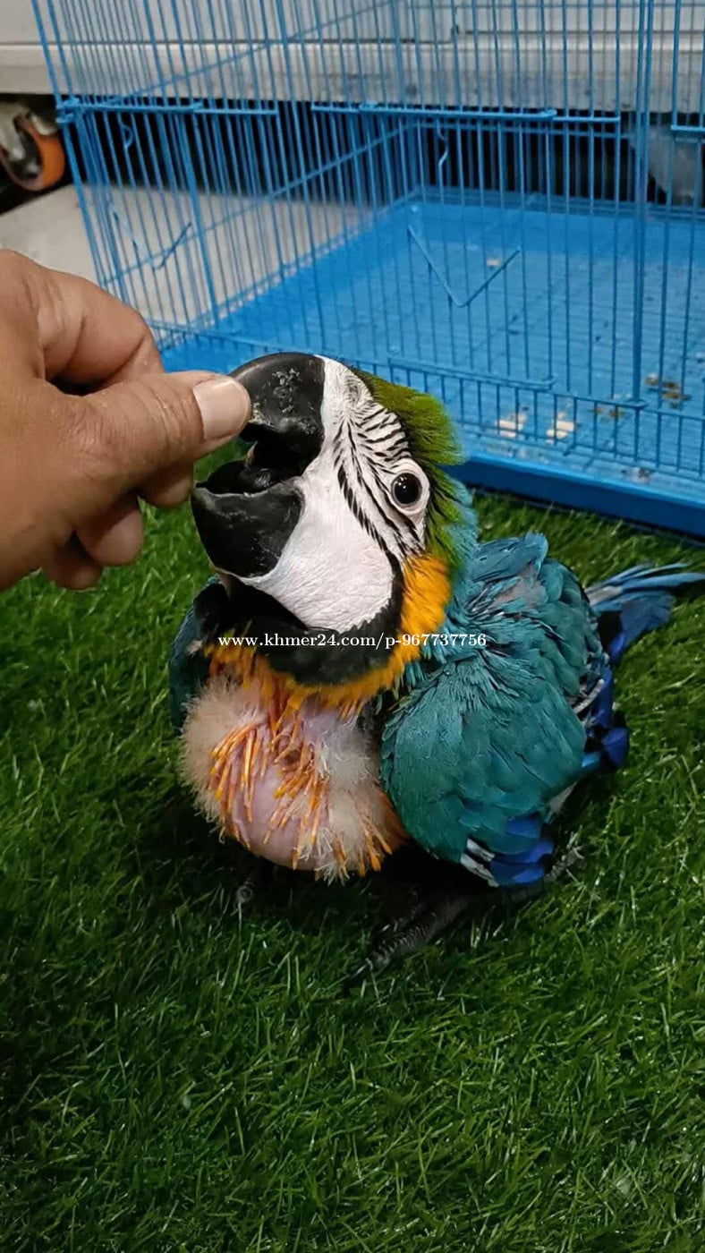 Blue and Gold Macaw Parrot Age 7 months Sex: Male Have DNA Certificate Health Checkup Letter