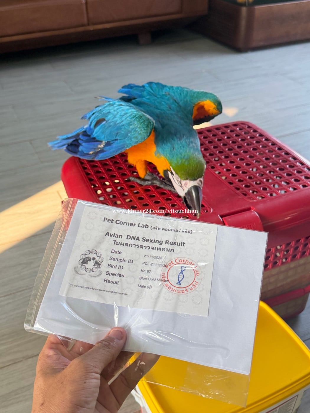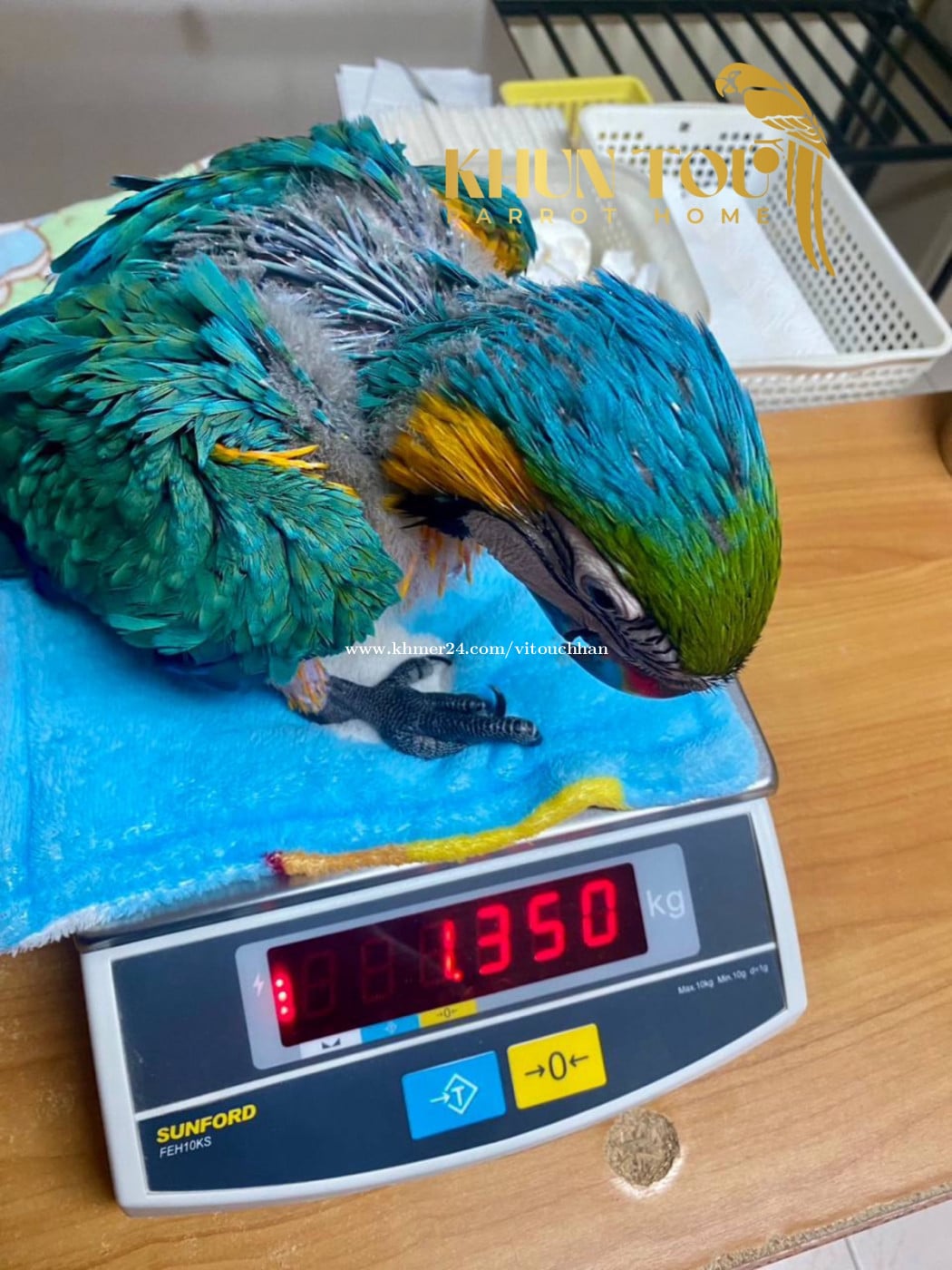 Beutiful Baby Blue and gold parrot 75days . Parrot Grade A Big Body Form . Full Health certificate and DNA