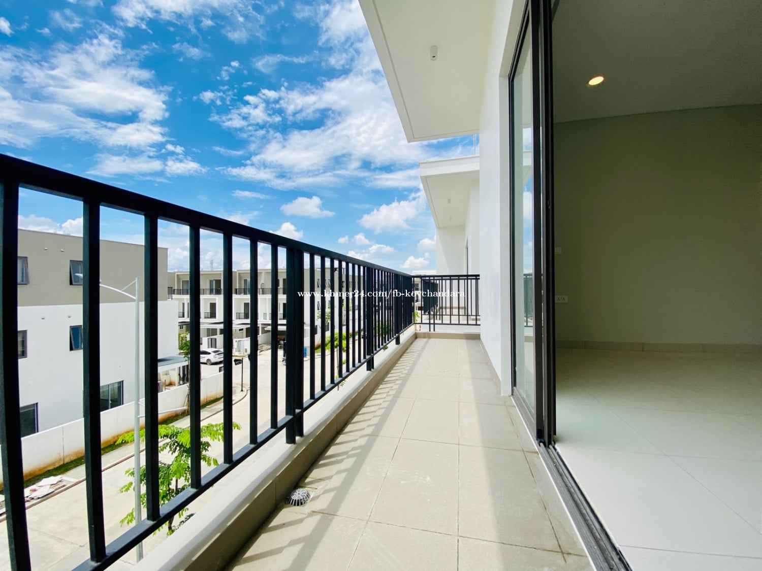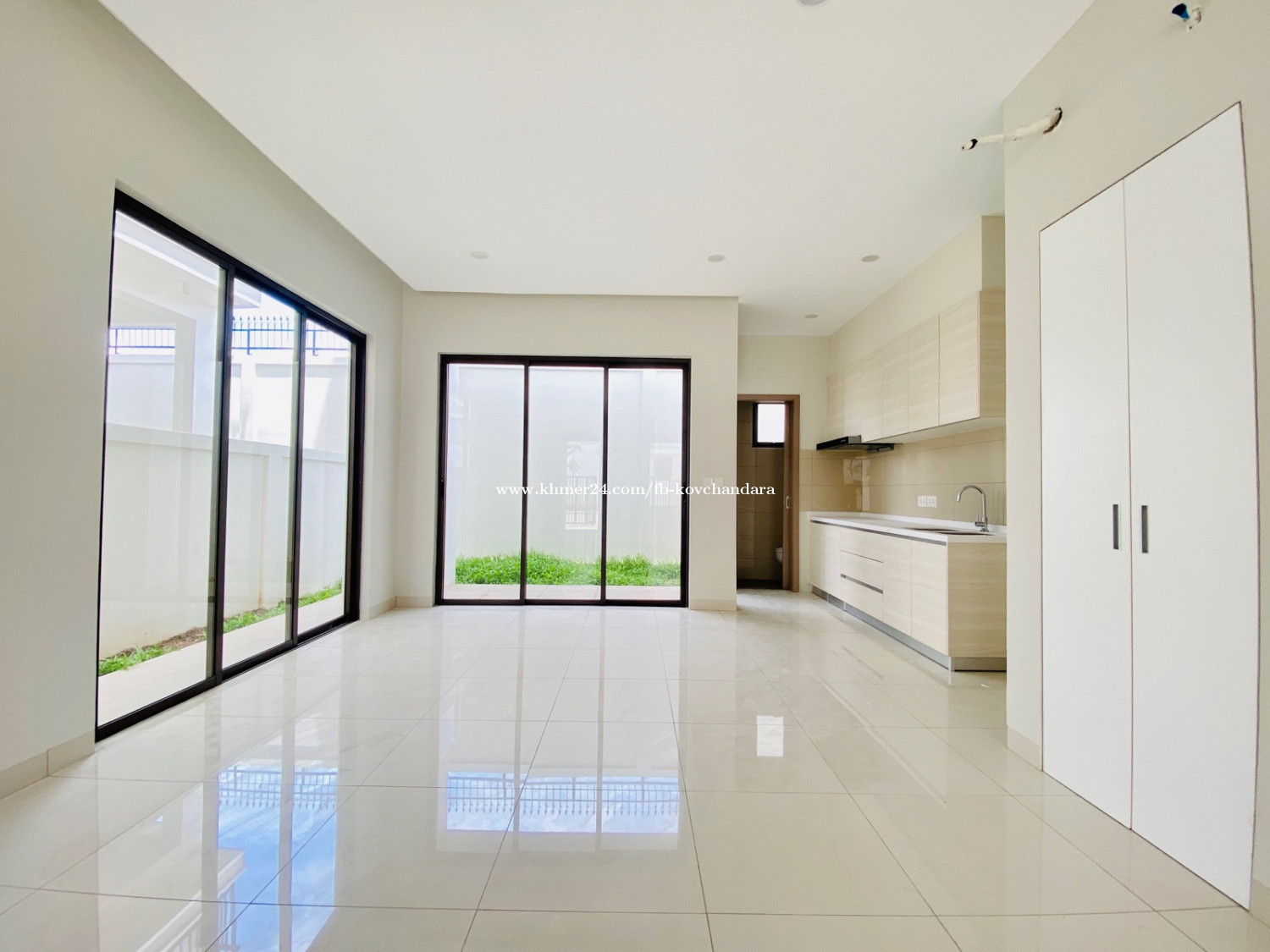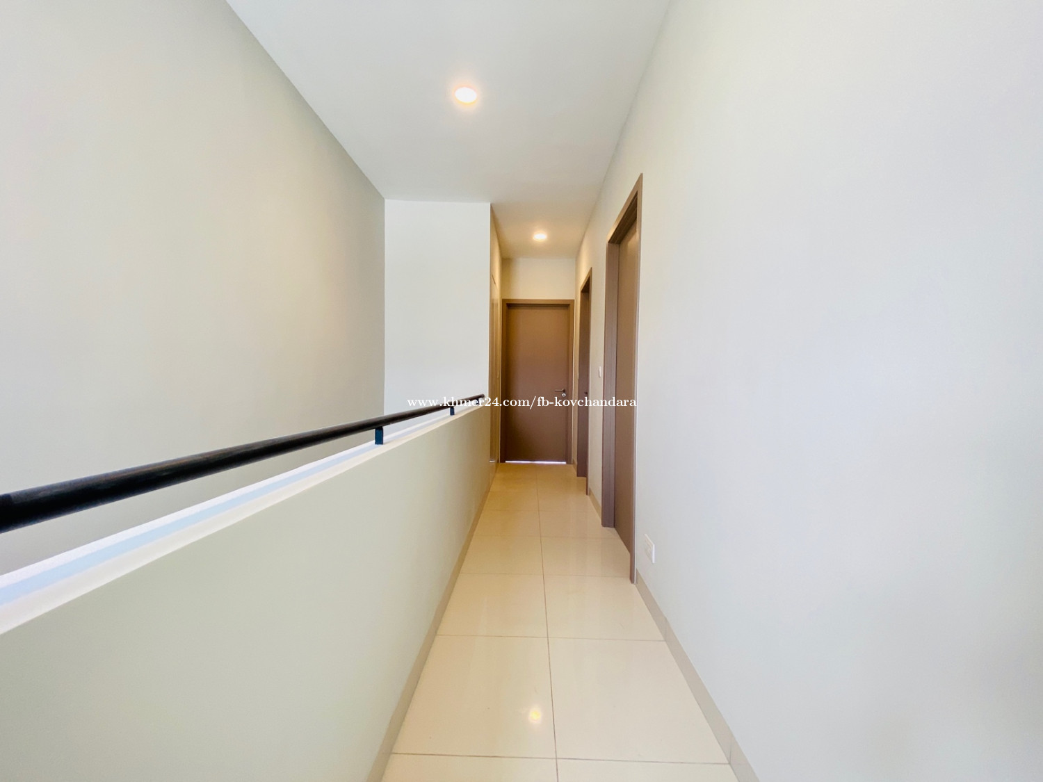 Borey chankiri链接别墅 卧室3 浴室3 侧链式房屋,有1.5米的绿地和后花园。一楼有一个开放式客厅、厨房、厕所和储藏室。一楼和二楼各有两间卧室和一间浴室。距离永旺3仅5公里,距离BKK115公里,距离新机场10公里