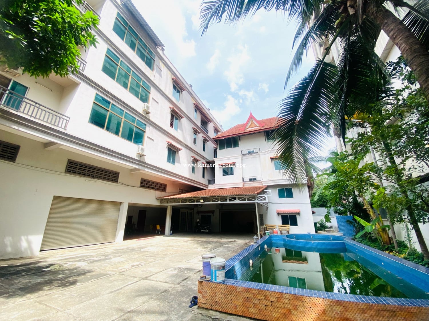 Building for Sale and rent at Toul Kork in safety area and easy access road: • Selling Price : $2,700,000 • Renta Price : $6,000/month • Land Size: 25m x 40m ( 1000m2 ) • Building Size: 10.50m x 32m • Floor: 3 ( 7rooms/floor ) • Office Space Ground Floor: 150m2 • Total: 24 units • Parking: 10-15car • Electric Machine is available • Some Furnished Good for school,hotel,guesthouse,boutique,renovation for apartment…..