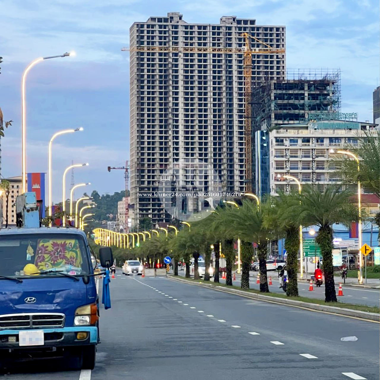 BUILDILNG FOR SALE Located: Sangkat 3, Sihanoukville For Sale: $26M (Negotiation) - Land area: 2,400m2 - Built-up area: 70,000m2 - Height: 37 storeys (including 5 commercial floors) - Room: 1,280 Best use: condo, apartment hotel & commercial building ID: YPR0222-1