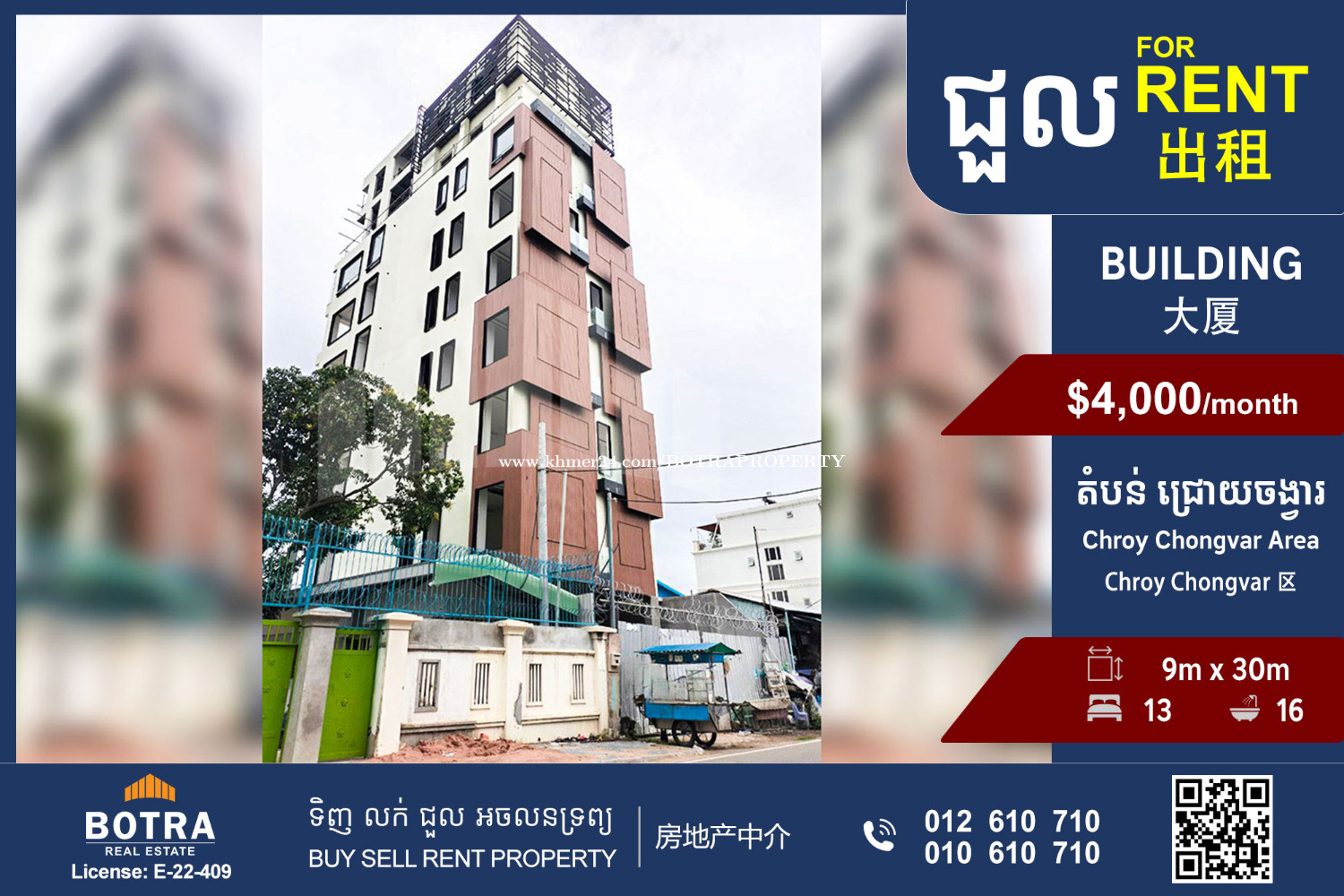 ๐ฃ Building for Rent #P1212 ๐ Locate: Chroy Chongvar Area ๐ Price: $4,000/month (nego) - Land size: 9m x 30m - Build size: 8m x 18m - Bedroom: 13 | Bathroom: 16 - With Elevator โโโโโโโโโ Contact us now ๐ 012610xxxClick To Call (Cellcard) ๐ 010610xxxClick To Call (Smart) โถ๏ธ t.me/BotraRealEstate (Chat)