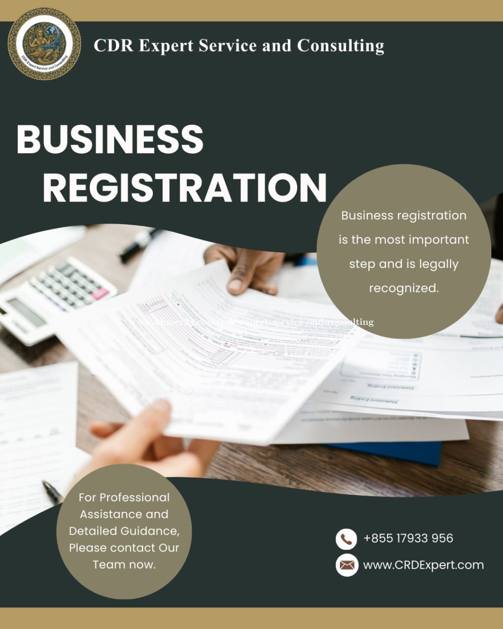 ចង់ចាប់ផ្តើមធ្វើអាជីវកម្មមួយអោយត្រឹមត្រូវ ការចុះបញ្ជីអាជីវកម្មគឺជាជំហានសំខាន់បំផុត ដើម្បីធ្វើឲអាជីវកម្មដែលមានស្ថេរភាព ទទួលបានការទុកចិត្តពីអតិថិជន និងទទួលបានការទទួលស្គាល់តាមផ្លូវច្បាប់ ------------------------------------------------ Want to start a business properly? Business registration is the most important step to make the business stable, gain trust from customers, and gain legal recognition. ✅ បទពិសោធន៍យូរឆ្នាំ និង ជំនាញច្បាស់លាស់ ក្នុងការងារឯកសារអចលនវត្ថុ។ ✅ ធានាភាពត្រឹមត្រូវ តាមនីតិវិធីច្បាប់។ ✅ ចំណេញពេលវេលា មិនបាច់រត់ការច្រើន ក្រុមការងារយើងនឹងជួយរៀបចំបំពេញឯកសារជូន។ ✅ តម្លៃសមរម្យ និងមានសុវត្តិភាព 📞 ទំនាក់ទំនងឥឡូវនេះ ដើម្បីពិគ្រោះយោបល់ដោយឥតគិតថ្លៃ! ទូរស័ព្ទលេខ (Phone): +855967570xxxClick To Call អាសយដ្ឋាន : គោកឃ្លាង ខណ្ឌសែនសុខ រាជធានីភ្នំពេញ