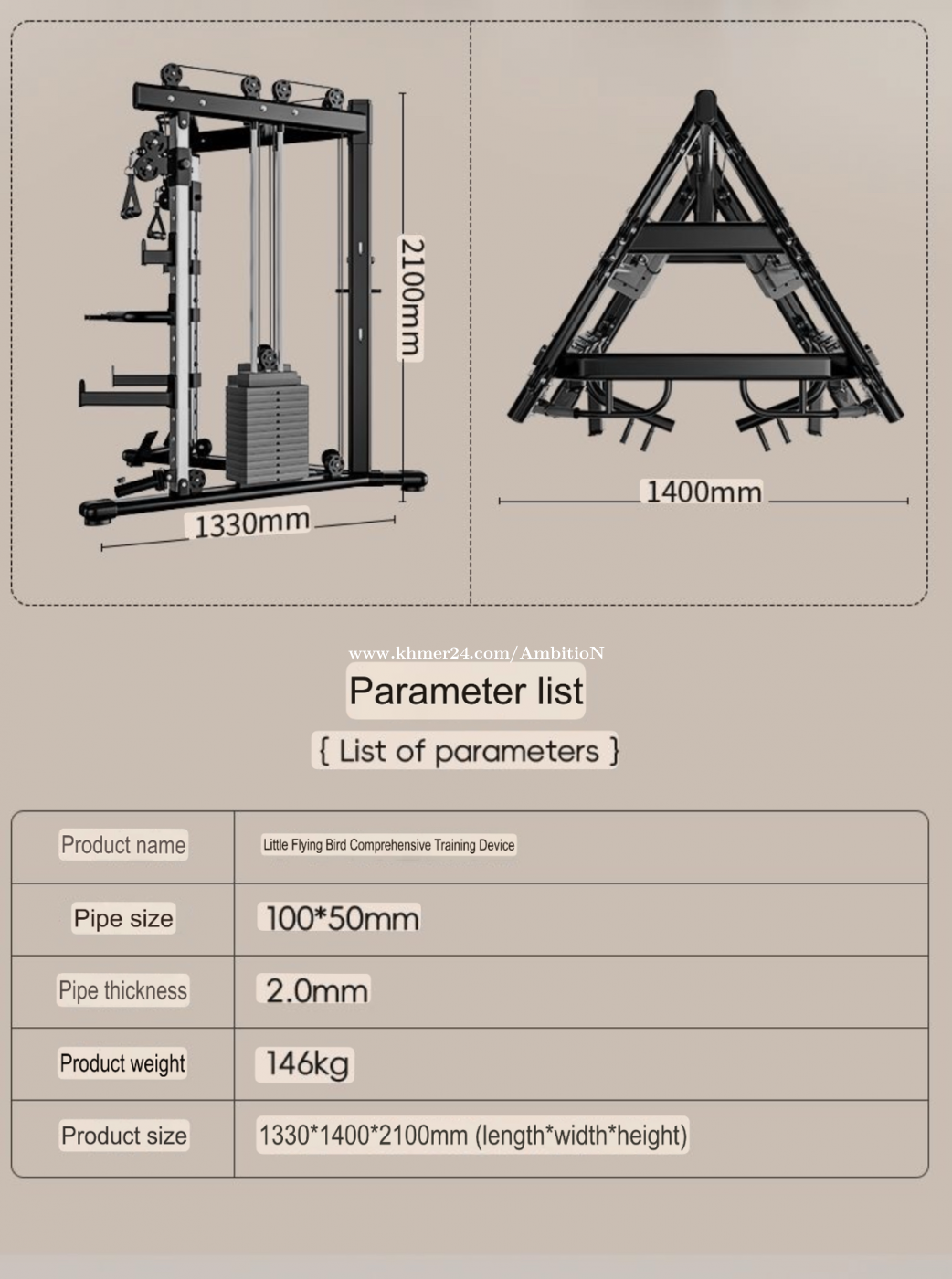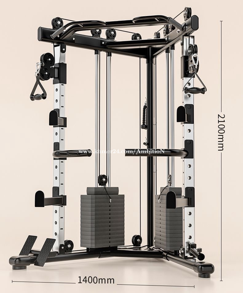 a Multipower Smith Machine or Multi-Function Power Rack, designed for weight training. Key features include: Versatile Use: Enables exercises for major muscle groups, including squats, bench presses, and military presses. Safety Features: The Smith machine design provides support, allowing users to handle heavier weights without the risk of dropping the bar. Durable Construction: Built with quality materials to support heavy loads. Space-Efficient Design: Compact, suitable for home gyms. Adjustable for All Levels: Suitable for beginners to advanced lifters. Cost-Effective: A one-time investment compared to ongoing gym memberships. Weigh on each side: 73KG total 146KG For more information Telegram: https://t.me/+855962750000 Or @SivLeng1