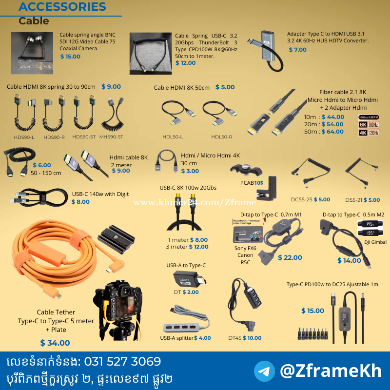 Cable Tether Type-C to Type-C 5 meter + Plate ខ្សែភ្លើង – Powerbank – Powerstation – ថ្ម – អេឡិចត្រូនិក Delivery +24H to PNH, 24/48h in all 25 province មានក្នុងស្ចុកស្រាប់ អាចទាក់ទងមកបានឫ ឆាតមកផេកក៌បាន៕ ហេីយមានលក់ ដូចជា សំភារៈសម្រាប់កាមេរ៉ា កំព្យូរទ័រ មានតម្លៃសមរម្យ: 👉លេខទំនាក់ទំនង: 0315273xxxClick To Call 👉តេលេក្រាម : t.me/ZframeKh 👉បញ្ជីតម្លៃ: t.me/Zframegr 👉https://www.facebook.com/zframekh Google maps : https://g.co/kgs/ukpxkbg 📍បុរីពិភពថ្មីកួរស្រូវ ២, ផ្ទះលេខ៩៧ ផ្លូវ២ 📍Borey New World Kor Srov II, #97 street 2 #️⃣ Hashtags #zframe #camera #filmmaking #filmmaker #sony #lumix #Canon #blackmagic #nikon #red #fuji #zframekh #sigma #cinema #phnompenh #Cambodia #siemreap #ស៊ុមដែក #ខ្សែភ្លើង #Powerbank #Powerstation #ថ្ម #អេឡិចត្រូនិក