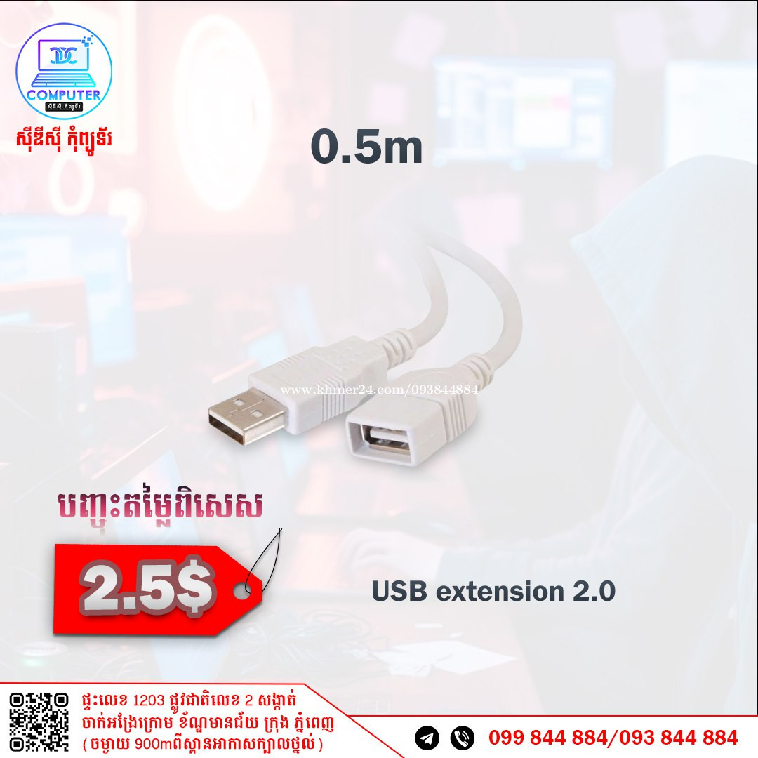Cable USB Male to USB Famale Price 2.5$ CDC COMPUTER 🖥 ☎️ ទូរស័ព្ទលេខ : 093844xxxClick To Call / 099844xxxClick To Call Telegram : t.me/CDCCOMPUTER093 🏠 ទីតាំងហាង : ផ្ទះលេខ 1203 ផ្លូវជាតិលេខ2 ចាក់អង្រែលើ ខ័ណ្ឌមានជ័យ ភ្នំពេញ (ចំងាយពីស្ពានអាកាសក្បាលថ្នល់ 900ម៉ែត្រ) 📍 Google map : https://maps.app.goo.gl/R3W9thPP5omgsMaZA