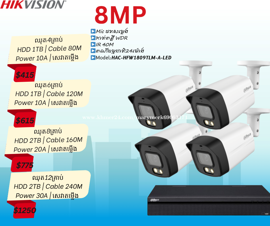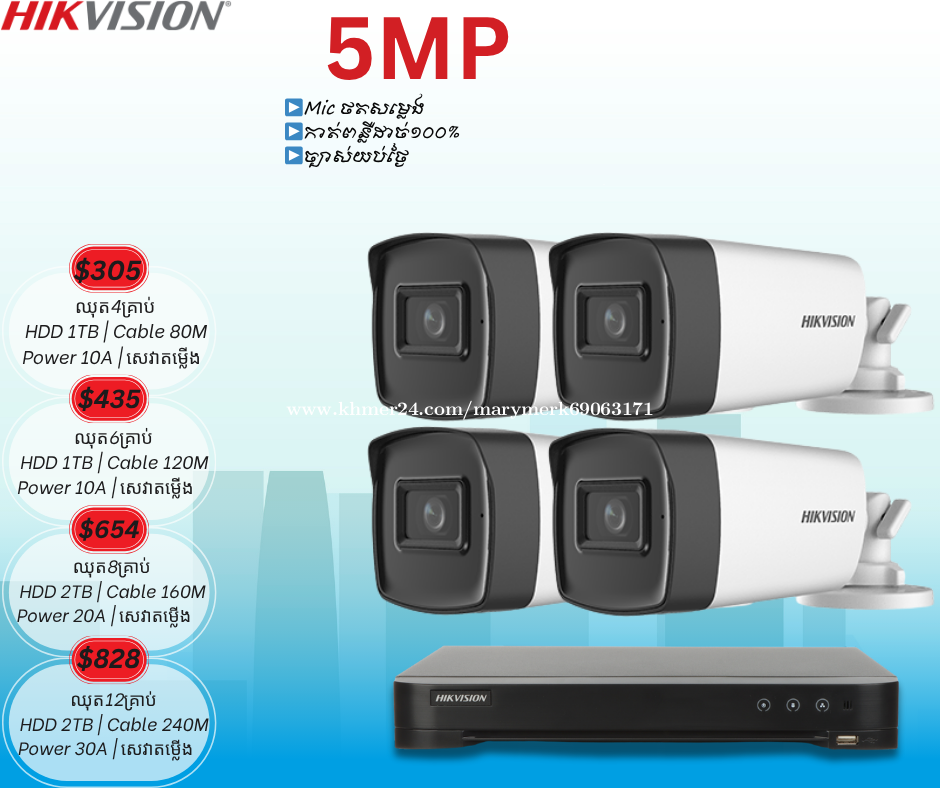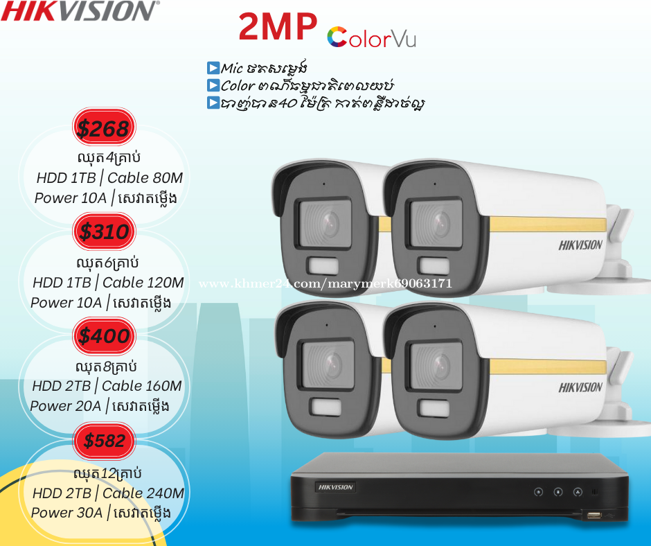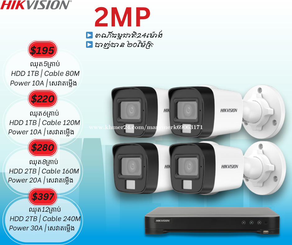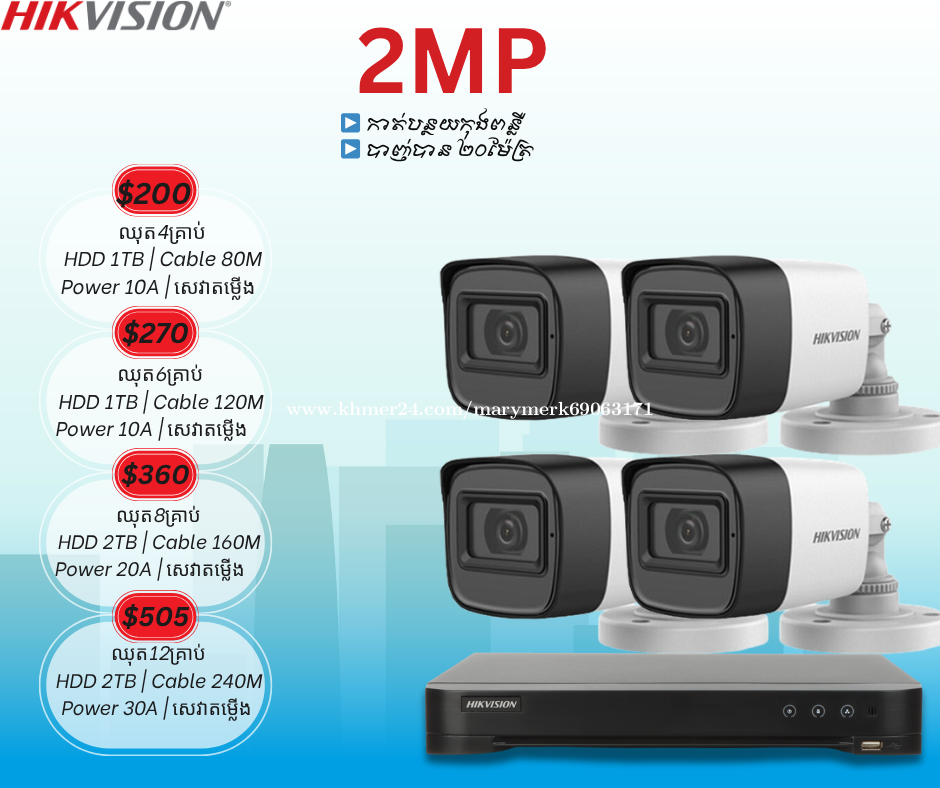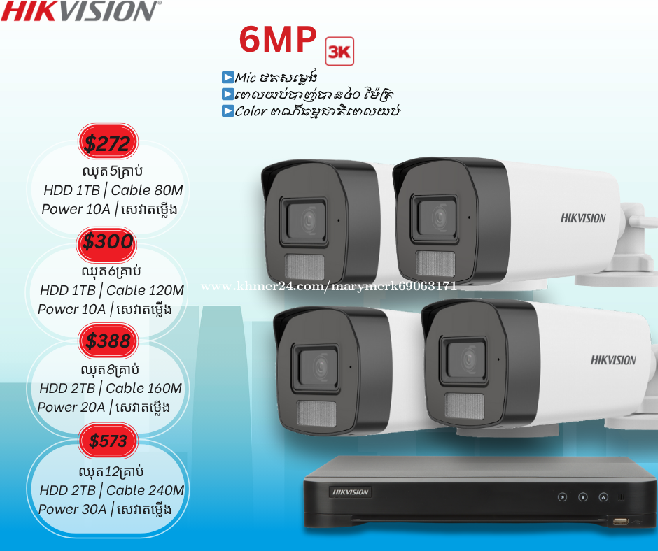 ប់សួរអតិថិជនរបស់ក្រុមហ៊ុន Mary Technology ជាទីគោរព 🙏 ថ្ងៃនេះក្រុមហ៊ុនយើងខ្ញុំបាននាំចូលប្រភេទ កាំមេរ៉ាសុវត្តិភាព ♻️Brank Hikviosin 👉Mic ថតសម្លេង 👉កាត់ពន្លឺWDR 👉IR 40M 👉 ពណ៍ធម្មជាតិ24ម៉ោង 👉កាត់បន្ថយកុងពន្លឺ 👉ច្បាស់យប់ថ្ងៃ 🙏 ព័ត័មានបន្ថែមសូមទំនាក់ទំនង មកកាន់លេខ ☎️098582xxxClick To Call ☎️099582xxxClick To Call ☎️066704xxxClick To Call 👉ចុចចូល Telegram: https://t.me/tata338713 👉Facebook Page: #MaryTechnologyCo.,Ltd 🗺សម្រាប់ទីតាំង https://goo.gl/maps/2ZAZ6Bb6P6jPUS58 ផ្ទះលេខ 20N ផ្លូវលេខ K4B សង្កាត់ទឹកថ្លា ខណ្ឌសែនសុខ ភ្នំពេញ #Network #Woori #bank #MaryTechnology #HIKVISON #Cambodai #Wooribankcambodai