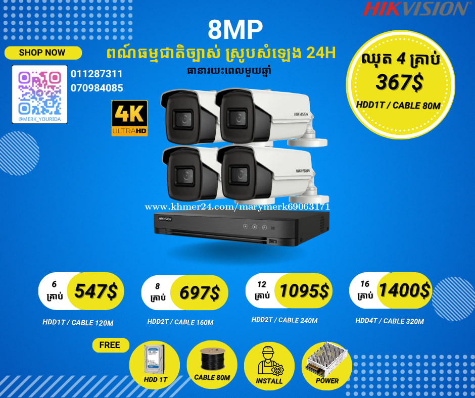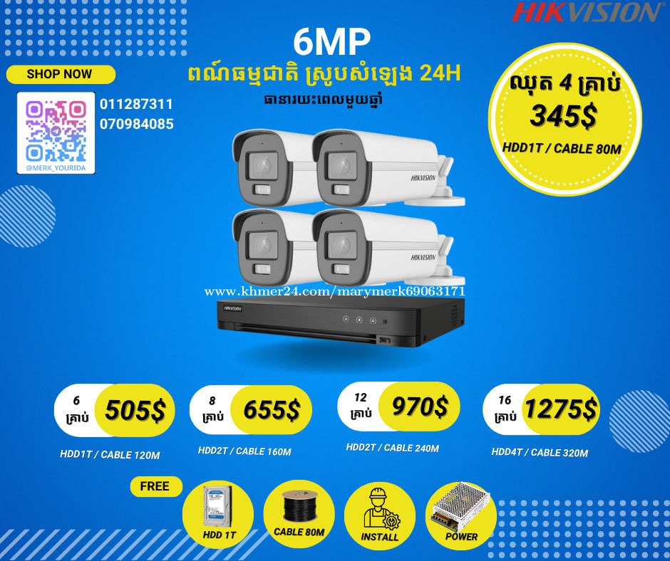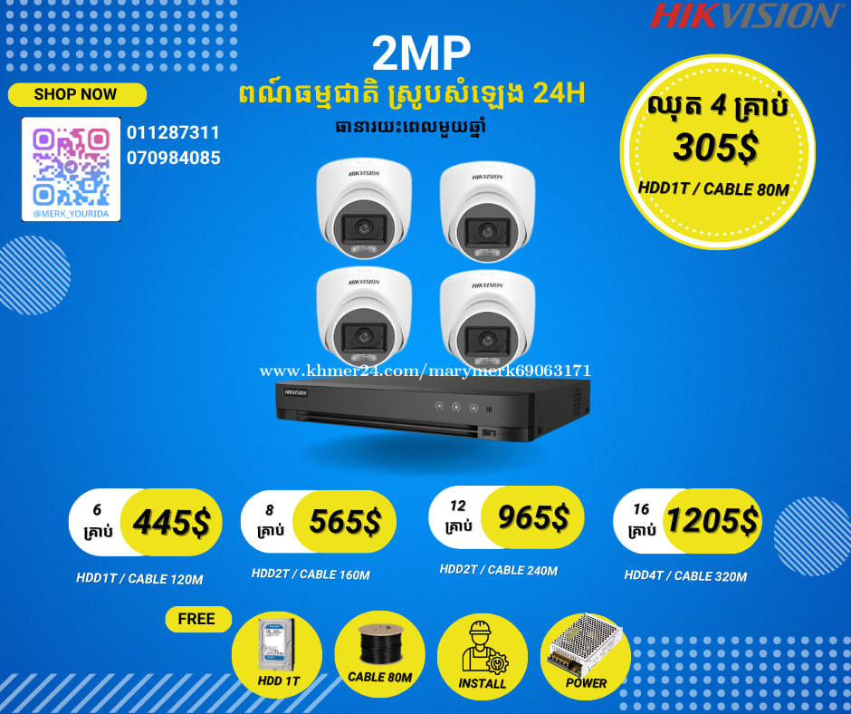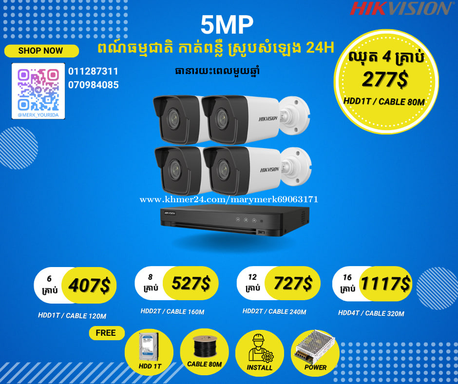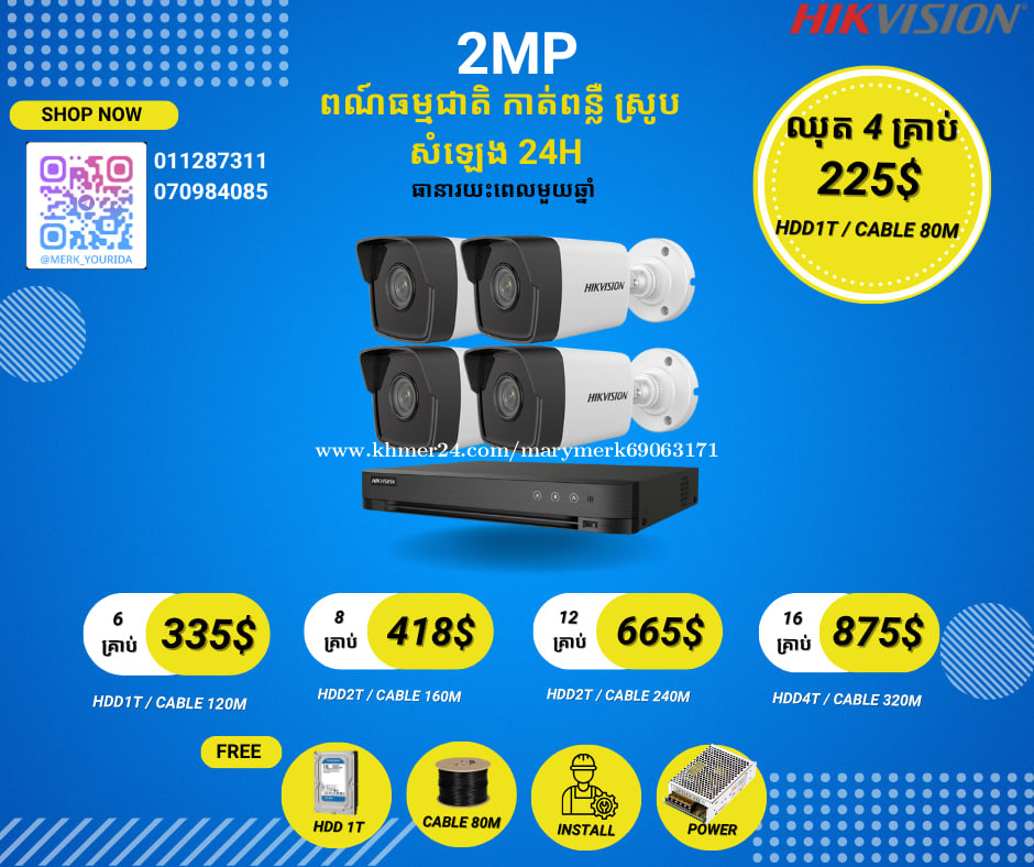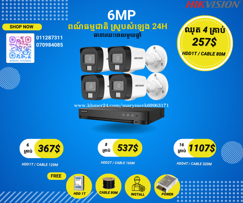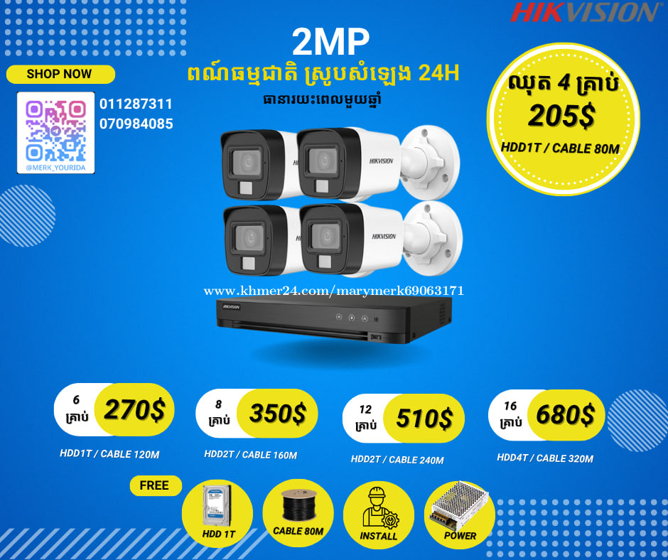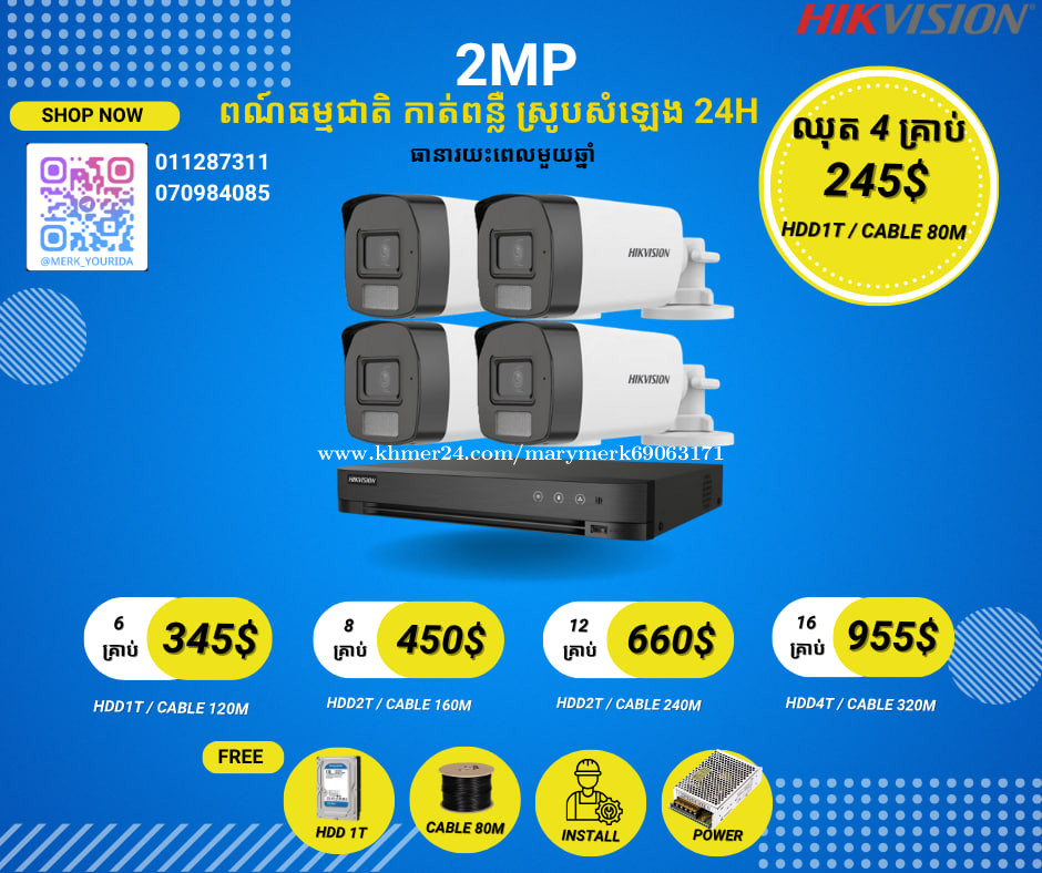 សួស្តីអតិថិជនរបស់ Monyroth Technology ជាទីគោរព យើងខ្ញុំសូមណែនាំពីផលិតផល: ប្រព័ន្ធកាមេរ៉ាសុវត្ថិភាព (System Security Camera) 👉ក្រុមហ៊ុនយើងផ្តល់ជូននៅសេវាកម្ម: #គុណភាព #សេវាកម្ម #តម្លៃសមរម្យ ✅មានតម្លៃពិសេសឈុតកាមេរ៉ាសុវត្ថិភាព !!!! ✅🛍️ រាល់ការជាវជាឈុត អតិថិជននឹងទទួលបាននូវការថែមជូន៖ ❶ផ្តល់ជូនបណ្ណធានាលើផលិតផលចេញពីក្រុមហ៊ុន ❷ការដំឡើងក្នុងភ្នំពេញឥតគិតថ្លៃ ❸អង្គផ្ទុកទិន្ន័យ 𝐇𝐚𝐫𝐝 𝐃𝐢𝐬𝐤 ទំហំ 𝟏𝐓𝐁 ~ 𝟒𝐓𝐁 ❹ដុំភ្លើងរួម 𝐏𝐨𝐰𝐞𝐫 𝐒𝐮𝐩𝐩𝐥𝐲 កំលាំង 𝟏𝟎𝐀 ~ 𝟐𝟎𝐀 ~ 𝟑𝟎𝐀 ❺ខ្សែភ្លោះកាមេរ៉ា 𝐑𝐆𝟓𝟗 𝟐𝐂 ប្រវែង 𝟖𝟎ម៉ែត្រ ~ 𝟑𝟐𝟎ម៉ែត្រ ❻ខ្សែ 𝐍𝐞𝐭𝐰𝐨𝐫𝐤 𝐂𝐚𝐭𝟔 , 𝟓ម៉ែត្រ ភ្ជាប់ទៅដុំ 𝐖𝐢𝐟𝐢 ❼ខ្សែ 𝐇𝐃𝐌𝐈/𝐕𝐆𝐀 𝟑ម៉ែត្រ សំរាប់ភ្ជាប់មើលលើទូរទស្សន៌ ❽ភ្ជាប់ជូន 𝐂𝐥𝐨𝐮𝐝𝐏𝟐𝐏 សំរាប់មើលតាមទូរសព្ទ័ដៃ ❾ធានាពីរោងចក្រពេញ 𝟏ឆ្នាំលើផលិតផល (𝐃𝐕𝐑, 𝐂𝐚𝐦𝐞𝐫𝐚, 𝐇𝐚𝐫𝐝 𝐃𝐢𝐬𝐤) ☎ទំនាក់ទំនងជាវផលិតផល: ☎️Smart: 070984xxxClick To Call ☎️Cellcard: 011287xxxClick To Call 📧Email:mer********@gmail.comClick To Sent Email 👉ចុចចូល Telegram: @merk_yourida ✍មានលក់ដុំនិងរាយ #ផ្ទះលេខ 20N ផ្លូវលេខ K4B សង្កាត់ទឹកថ្លា ខណ្ឌសែនសុខ ភ្នំពេញ. 🗺ប្រាប់ពីទីតាំង:https://maps.app.goo.gl/vyqv7wgUvdS7T3v86 #ZKTeco #wooribankcambodia #Bank #Cambodia #HIKVISION #SP #clinic #TPLink #ptz #power #4G #solar #Omada #Bella #timer #TimelessElegance #school #ATTENDANCE #fingerprints #Two #workout #audio #cars #carcare #driving #Cambodia #phnompenh #upsc #kva #Battery #online #power #camera #security #system #dvr #NVR #color
