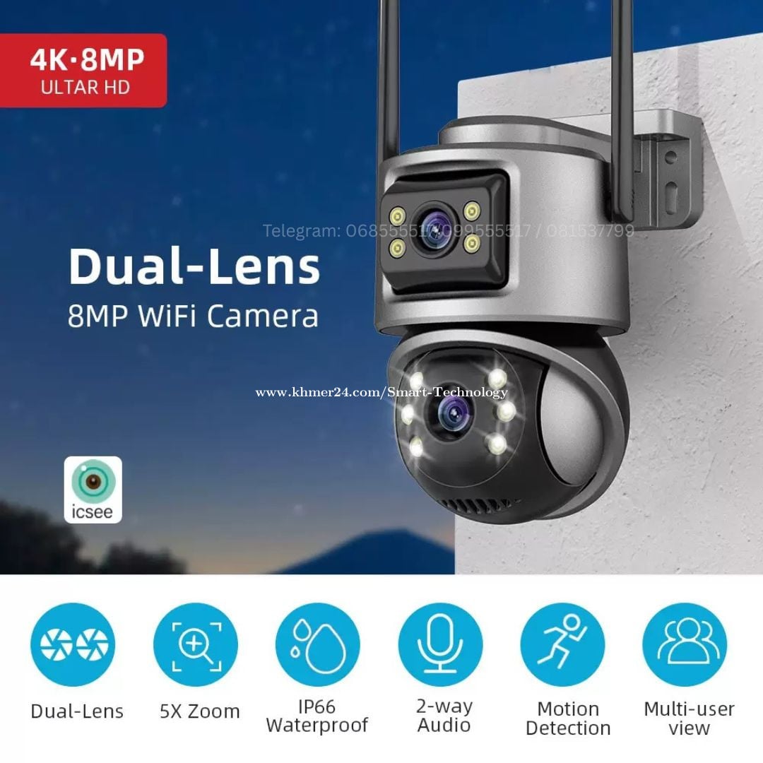 កាមេរ៉ា WiFi មានមុខងារសំខាន់ៗ.... ចាប់បាន២ប្លង់ - បង្វិលបាន៣៦០ដឺក្រ បញ្ជាវិលលើក្រោម - មានស្រូបសម្លេង - និយាយឆ្លើយឆ្លងគ្នាបាន - មានមុខងារផ្តល់សញ្ញាមកទូរស័ព្ទដៃយើង - អាចកំណត់សារ៉េតបន្លឺពីកាមេរ៉ា ពេលមានមនុស្សឆ្លងកាត់ - មានមុខងាររ៉េតាមមនុស្ស - មាន LEDបាញ់flash អោយកាមេរ៉ាមានពណ៌ពេលយប់ - អាចហាលភ្លៀង ខ្យល់ ក្ដៅ - មាន Free Memory 64gb (គុណភាពល្អ) - Free Cable 5m - Free Delivery Location: 10MC , Khan Mean Chey Stueng Mean chey 2, Mean Chey, Phnom Penh