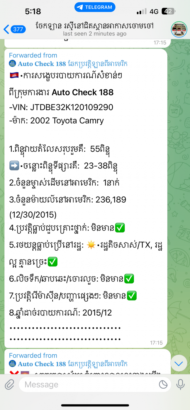 Camry Le abs កៅអីចុច ពណ៏ទឹកប្រាក់ ផ្លាកលេខ2AJ-5977PP អត់បុកអត់ប៉ះ បាតអត់ច្រេស ជើងក្រោមហាប់ណែន ម៉ាសុីនប្រអប់លេខល្អ ឯកសារគ្រប់ម្ចាស់ដើម ជិះលក្ខណះគ្រួសារ តំលៃ 9700$ចរចា Call 012202xxxClick To Call 016266xxxClick To Call