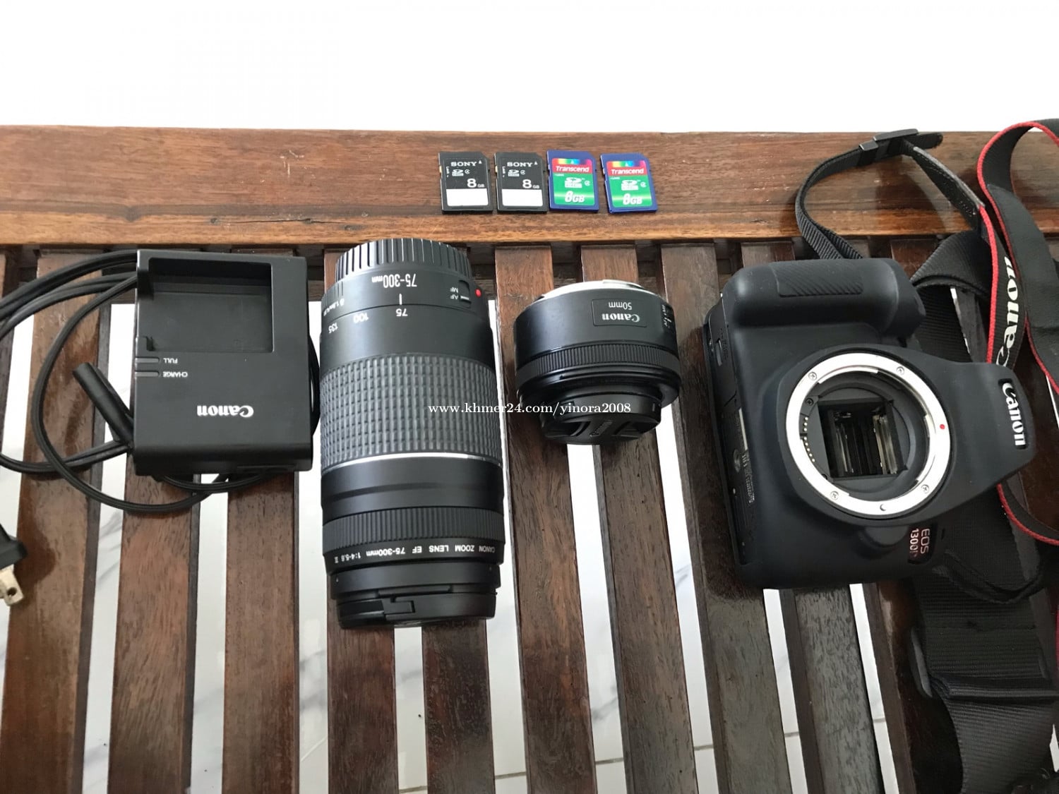 Canon 1300D with Len 50mm and 300mm ថែម Memory 8GB (4គ្រាប់) រួមបញ្ចូលឧបករណ៍សំអាត កាបូបស្ពាយ