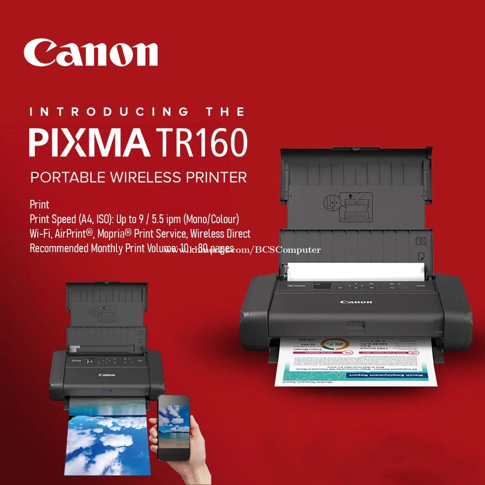 Canon PIXMA TR160 Wireless Portable Printer Designed for professionals on the go, the Canon TR160 Wireless Portable Printer with Battery offers the convenience and flexibility you need for high-quality printing wherever your work takes you. Whether you're traveling for business or need a compact printing solution in a remote location, the TR160 delivers reliable performance, exceptional portability, and the freedom to print without being tied to a power outlet.