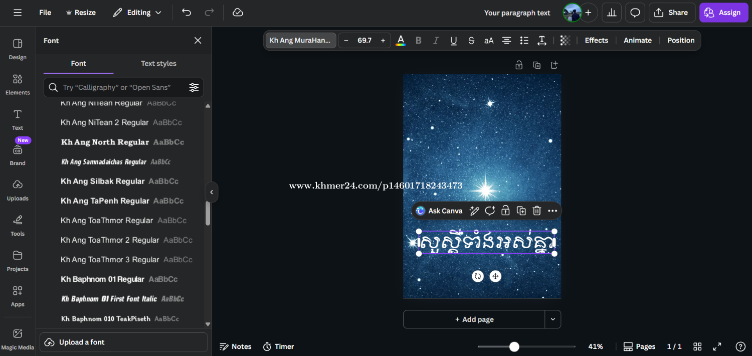 Contact Info: Please don't forget to mention that you found this ad on khmer24.com.