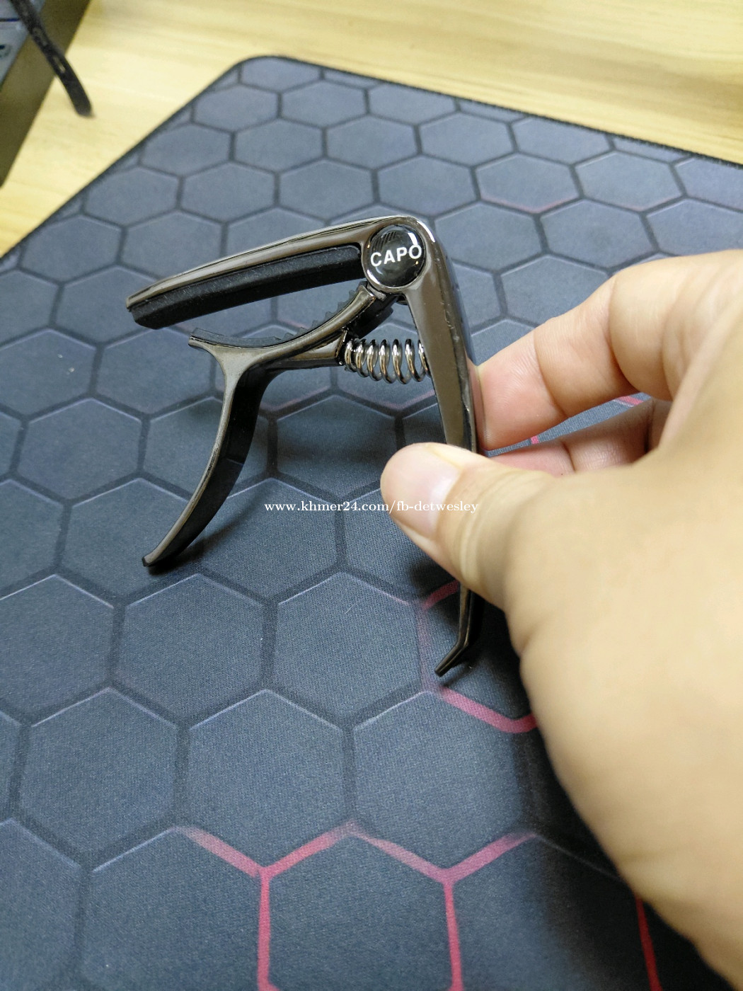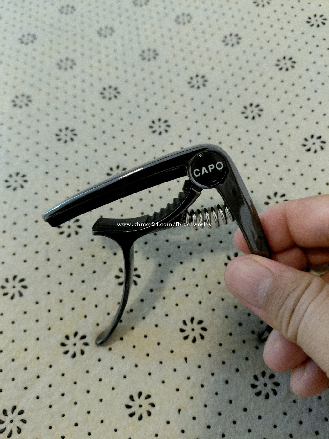 Capo សំរាប់ហ្គីតា មានភាពរឹងមាំ ធ្ងន់ ហើយធន់ មានច្រើនពណ៌ និងមានមានជើង អាចប្រើរសំរាប់ គាស់ខ្សែរ ហ្គីតាបាន