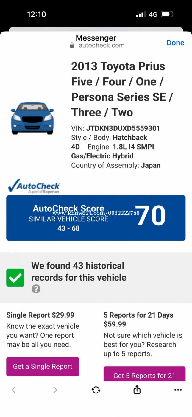 Toyota Prius 013 option 3 ឡានកាលី ទឹកថ្នាំសុីន១ជុំអត់បុកអត់ច្រេះប្រភេទមេឡាន auto check 70 ពិន្ទុ 17900ដាច់
