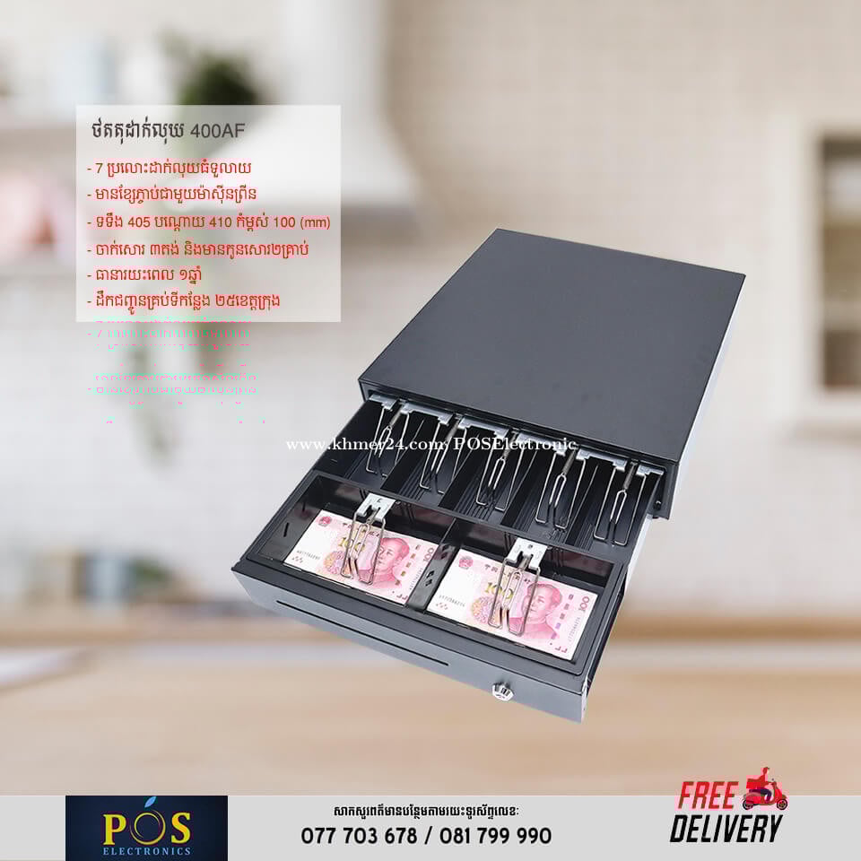 បោះដុំ និង រាយ ថតតុ ឬ កេសដាក់លុយ ** មានតំលៃពិសេសសំរាប់បងប្អូនយកលក់បន្ត !!! ** Free ដឹកជញ្ចូន ២៤ខេត្តក្រុង ** ធានារយះពេល 1ឆ្នាំលើគ្រឿងបំលាស់និងដូរថ្មីជូន ** គុណភាពល្អលេខ #1 ប្រើបានយូរអង្វែងសំរាប់អាជីវកម្ម ----------------------------------------- Model:PS-400AH 👉 7 boxes for bills 👉 Interface: RJ11 👉 Dimen: 405mm(w) *410mm(D)*100mm(H) 👉 Color: Black *******************************
