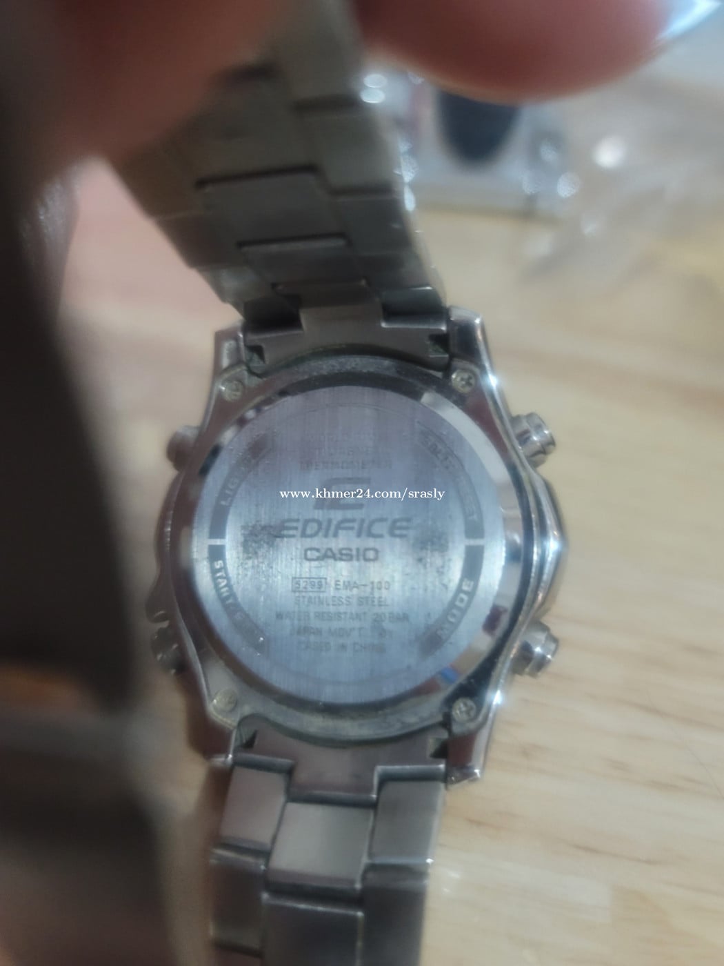 Second hand good condition waterproof Super illuminator With the push of a button, the display lights up in a fashionable color. Resistant to magnetic fields This case is designed to protect against magnetic fields. Neo-display A luminous coating requires xposure to light, to provide a light effect in the dark. Thermometer A sensor measures the temperature around the watch and displays it in Celsius. Operation range: -10°C to +60°C. Tide Graph Tidal movement is graphically displayed on the dial, adjusted for your latitude and longitude position. Moon data display Based on your current position, in relation to latitude and longitude, the currant moon phases is visible on the dial. World clock The largest cities in the world are pre-programmed in this watch, so you can select current city/town (closest to you, in the same time zone), and the watch automatically shows the correct time. Stopwatch function - 1/100 sek. - 1000 timer Preliminary time, split time and final time are measured down to 1/100 of a second's accuracy. The measuring capacity is up to 1000 hours! Timers - 1/1 min - 24 hours (with auto repeat) Useful general information: the countdown timer can provide reminders of special and/or repeating events. The timers can also automatically count back from the defined time. Timers can be set in second intervals, up to 24 hours in advance - so it is very useful for reminding about training/medicine. 5 daily alarms The alarms are using an acoustic signal that could remind you of repeating events at a set time. You can also set a time signal that indicates each full hour. This model has five independent alarms for flexible reminders of important appointments/events. Snooze function You can pause the alarm, and it will be reactivated after a few minutes. Keyboard sounds on/off The keyboard sounds can be deactivated, without affecting other sounds (alarm, reminders et cetera). Auto-calendar The watch automatically adjust for different months different lengths, and for leap years. 12/24-hour timing The time can be specified either in a 12 hour (AM/PM) or in a 24 hour format. Mineral crystal This, very durable, mineral crystal has improved protection. Stainless steel bracelet Tough, durable and elegant; a bracelet made of stainless steel gives the watch a classic quality look. Safety mechanism This watch has an extra safety mechanism, which prevents the lock from getting opened by accident. Water protection: 200 meter (20 bar) This watch can be worn while swimming/snorkeling (near the surface). The value refers to the pressure in water, at that depth, while motionless... and should not be seen as the depth for wearing the watch.. Specifications Specifications Diameter 46 mm Case depth 13 mm Modelnumber EMA100D 1A2VEF Brand Casio Gender Men Strap type Stainless steel Strap color Silver Strap width 20 mm Clasp Type Deployment clasp Case material Stainless steel Case color Silver Color of dial Blue, Green, Grey, LCD/LED Glass Mineral Water resistance 20 atm (snorkling) Movement Ana-digital combo https://www.facebook.com/share/v/1FLwgxMtuz/ https://www.gofundme.com/f/support-a-mom-battling-cancer-and-schizophrenia
