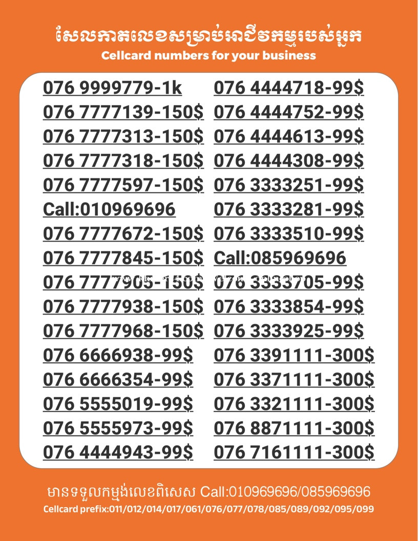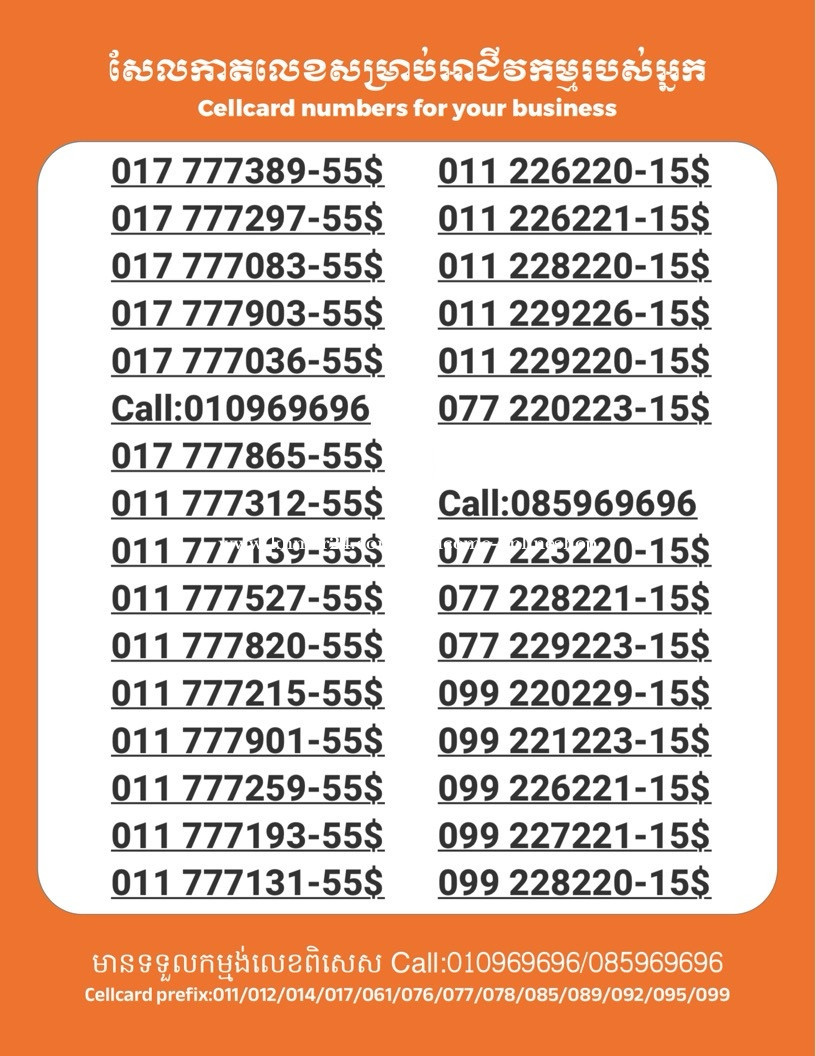 មានលក់លេខពិសេស មានទទួលកម្មង់លេខពិសេស មានលក់ម៉ាស៊ីនព្រីនឡាបែលចល័ត មានលក់ម៉ាស៊ីនព្រីនវិក័យប័ត្រចល័ត មានលក់សម្ភារៈប្រើប្រាស់ក្នុងគ្រួសារ Smart Prime II 1=30$ Smart hero 1=40$ ទូរសព្ទថ្មីក្នុងប្រអប់ លក់ធូរៗរហូតអស់ពីស្តុក អាចប្រើជាឧបករណ៍សម្រាប់ស៊ែរ wifi បាន ទំនាក់ទំនង(ខ្មែរ | English | 中文):010969696 | 085969696 Telegram: https://t.me/W9696 Telegram group: https://t.me/konkonnada អាសយដ្ឋាន:ផ្ទះលេខ២៣ ផ្លូវបេតុងលេខ១ ភូមិទួលពង្រ សង្កាត់ចោមចៅ ខណ្ឌពោធិ៍សែនជ័យ រាជធានីភ្នំពេញ ទីតាំង https://goo.gl/maps/8moqW4iTHUfJEvWQ9 ដើម្បីស្វែងរកលេខអាជីវកម្មដែលលោកអ្នកពេញចិត្ត សូមចូលទៅកាន់:https://www.khmer24.com/Welcome-onlineshop
