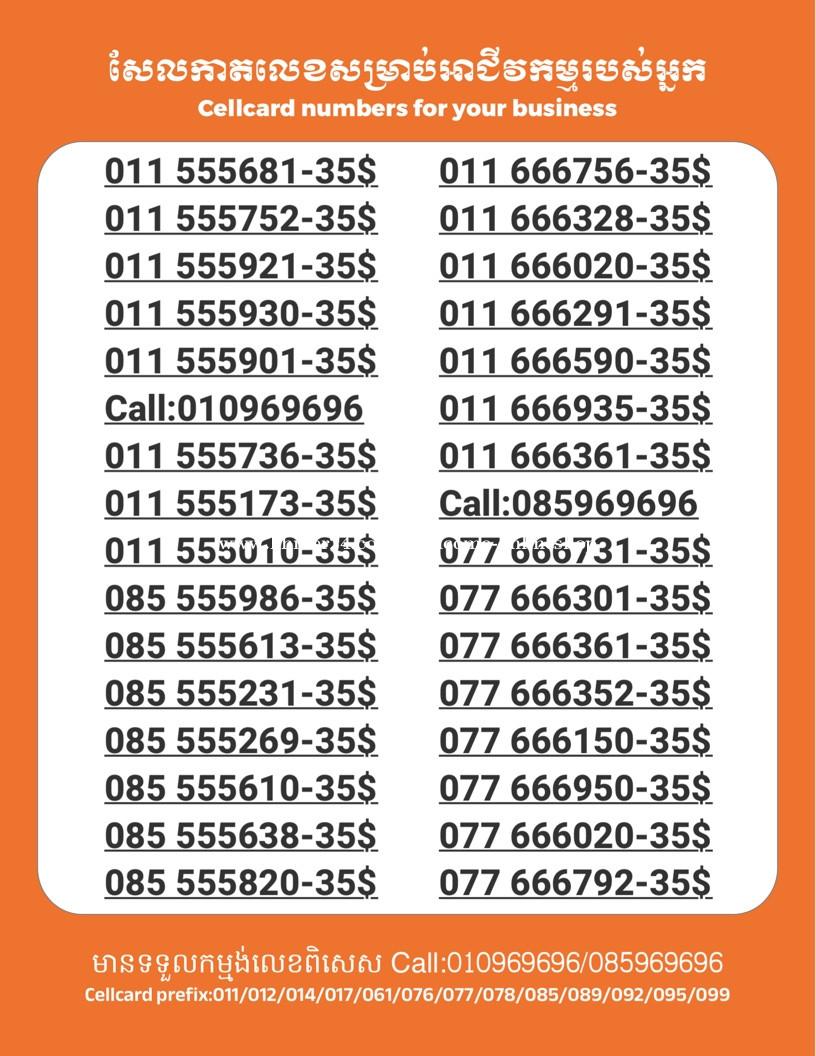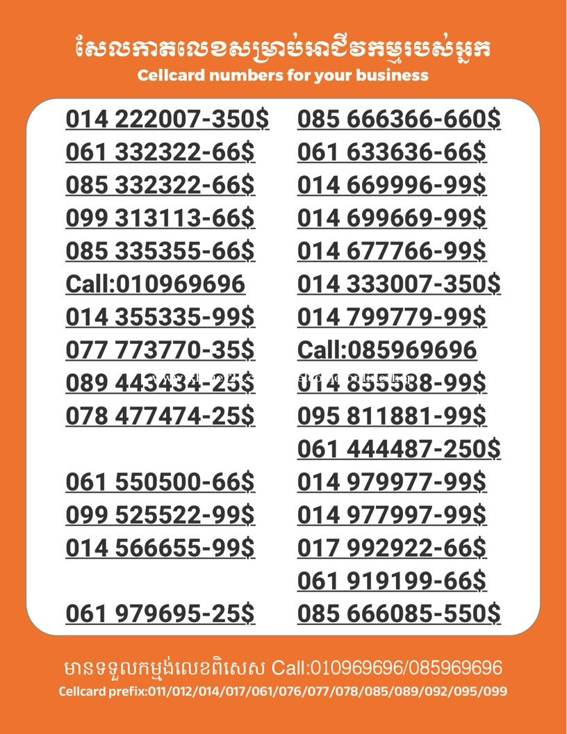 មានលក់លេខពិសេស មានទទួលកម្មង់លេខពិសេស មានលក់ម៉ាស៊ីនព្រីនឡាបែលចល័ត មានលក់ម៉ាស៊ីនព្រីនវិក័យប័ត្រចល័ត មានលក់សម្ភារៈប្រើប្រាស់ក្នុងគ្រួសារ Smart Prime II 1=30$ Smart hero 1=40$ ទូរសព្ទថ្មីក្នុងប្រអប់ លក់ធូរៗរហូតអស់ពីស្តុក អាចប្រើជាឧបករណ៍សម្រាប់ស៊ែរ wifi បាន ទំនាក់ទំនង(ខ្មែរ | English | 中文):010969696 | 085969696 Telegram: https://t.me/W9696 Telegram group: https://t.me/konkonnada អាសយដ្ឋាន:ផ្ទះលេខ២៣ ផ្លូវបេតុងលេខ១ ភូមិទួលពង្រ សង្កាត់ចោមចៅ ខណ្ឌពោធិ៍សែនជ័យ រាជធានីភ្នំពេញ ទីតាំង https://goo.gl/maps/8moqW4iTHUfJEvWQ9 ដើម្បីស្វែងរកលេខអាជីវកម្មដែលលោកអ្នកពេញចិត្ត សូមចូលទៅកាន់:https://www.khmer24.com/Welcome-onlineshop