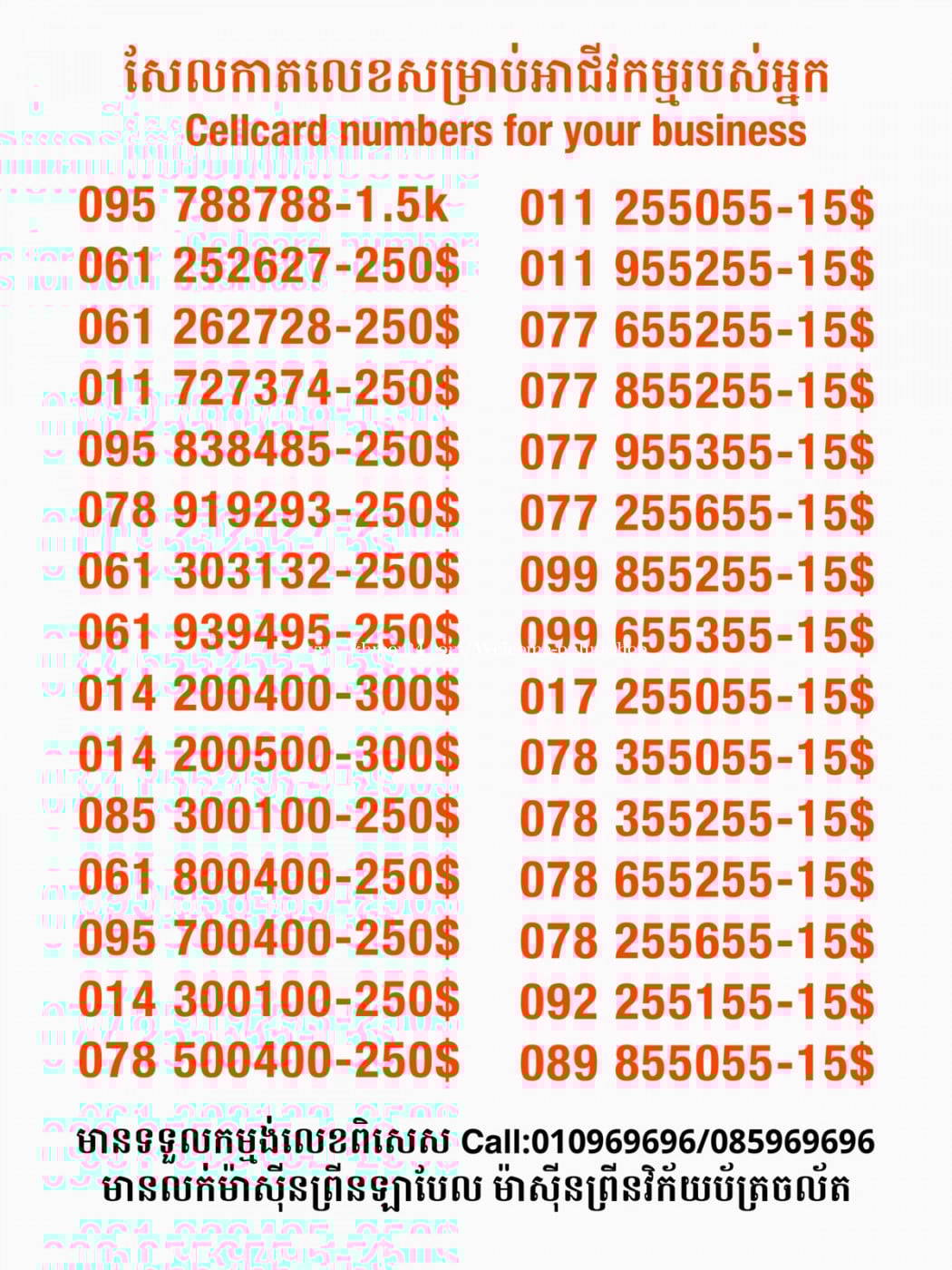 មានលក់លេខពិសេស មានទទួលកម្មង់លេខពិសេស មានលក់ម៉ាស៊ីនព្រីនឡាបែលចល័ត មានលក់ម៉ាស៊ីនព្រីនវិក័យប័ត្រចល័ត មានលក់សម្ភារៈប្រើប្រាស់ក្នុងគ្រួសារ Smart Prime II 1=30$ Smart hero 1=40$ ទូរសព្ទថ្មីក្នុងប្រអប់ លក់ធូរៗរហូតអស់ពីស្តុក អាចប្រើជាឧបករណ៍សម្រាប់ស៊ែរ wifi បាន ទំនាក់ទំនង(ខ្មែរ | English | 中文):010969696 | 085969696 Telegram: https://t.me/W9696 Telegram group: https://t.me/konkonnada អាសយដ្ឋាន:ផ្ទះលេខ២៣ ផ្លូវបេតុងលេខ១ ភូមិទួលពង្រ សង្កាត់ចោមចៅ ខណ្ឌពោធិ៍សែនជ័យ រាជធានីភ្នំពេញ ទីតាំង https://goo.gl/maps/8moqW4iTHUfJEvWQ9 ដើម្បីស្វែងរកលេខអាជីវកម្មដែលលោកអ្នកពេញចិត្ត សូមចូលទៅកាន់:https://www.khmer24.com/Welcome-onlineshop
