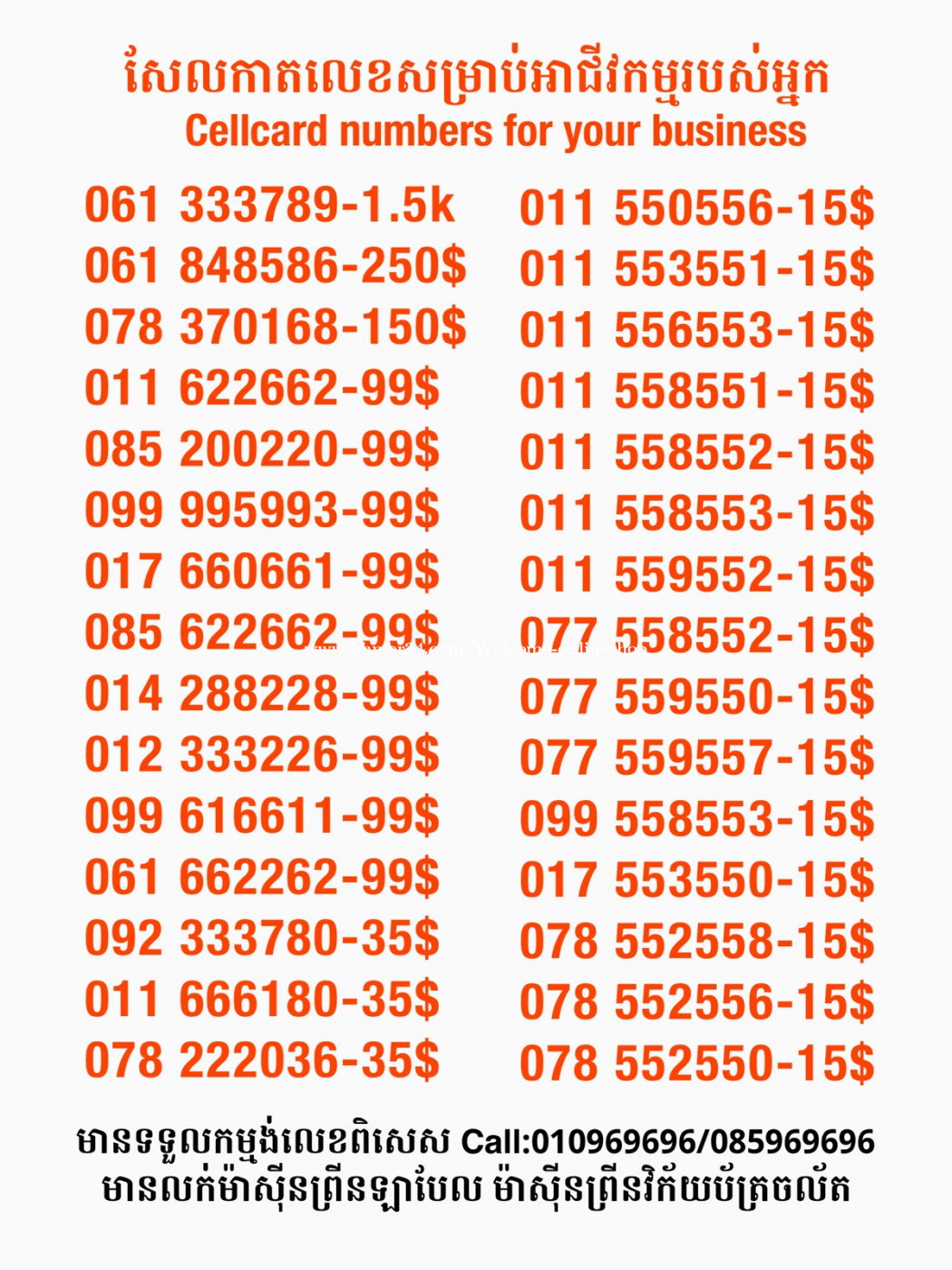 មានលក់លេខពិសេស មានទទួលកម្មង់លេខពិសេស មានលក់ម៉ាស៊ីនព្រីនឡាបែលចល័ត មានលក់ម៉ាស៊ីនព្រីនវិក័យប័ត្រចល័ត មានលក់សម្ភារៈប្រើប្រាស់ក្នុងគ្រួសារ Smart Prime II 1=30$ Smart hero 1=40$ ទូរសព្ទថ្មីក្នុងប្រអប់ លក់ធូរៗរហូតអស់ពីស្តុក អាចប្រើជាឧបករណ៍សម្រាប់ស៊ែរ wifi បាន ទំនាក់ទំនង(ខ្មែរ | English | 中文):010969696 | 085969696 Telegram: https://t.me/W9696 Telegram group: https://t.me/konkonnada អាសយដ្ឋាន:ផ្ទះលេខ២៣ ផ្លូវបេតុងលេខ១ ភូមិទួលពង្រ សង្កាត់ចោមចៅ ខណ្ឌពោធិ៍សែនជ័យ រាជធានីភ្នំពេញ ទីតាំង https://goo.gl/maps/8moqW4iTHUfJEvWQ9 ដើម្បីស្វែងរកលេខអាជីវកម្មដែលលោកអ្នកពេញចិត្ត សូមចូលទៅកាន់:https://www.khmer24.com/Welcome-onlineshop