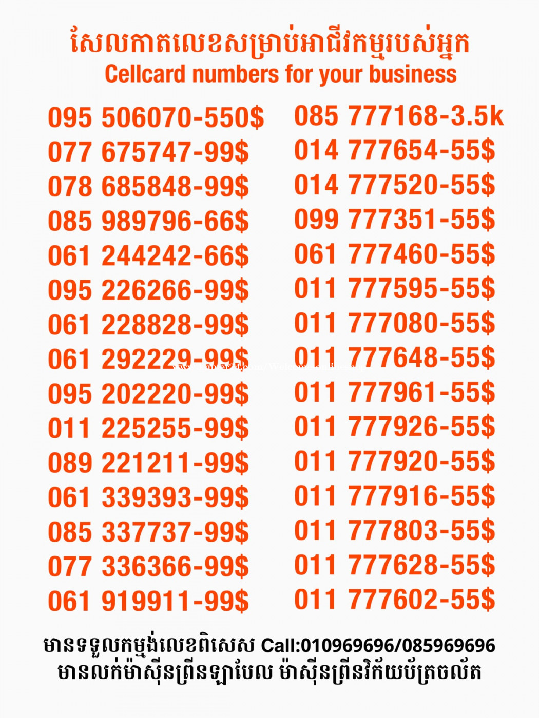 មានលក់លេខពិសេស មានទទួលកម្មង់លេខពិសេស មានលក់ម៉ាស៊ីនព្រីនឡាបែលចល័ត មានលក់ម៉ាស៊ីនព្រីនវិក័យប័ត្រចល័ត មានលក់សម្ភារៈប្រើប្រាស់ក្នុងគ្រួសារ Smart Prime II 1=30$ Smart hero 1=40$ ទូរសព្ទថ្មីក្នុងប្រអប់ លក់ធូរៗរហូតអស់ពីស្តុក អាចប្រើជាឧបករណ៍សម្រាប់ស៊ែរ wifi បាន ទំនាក់ទំនង(ខ្មែរ | English | 中文):010969696 | 085969696 Telegram: https://t.me/W9696 Telegram group: https://t.me/konkonnada អាសយដ្ឋាន:ផ្ទះលេខ២៣ ផ្លូវបេតុងលេខ១ ភូមិទួលពង្រ សង្កាត់ចោមចៅ ខណ្ឌពោធិ៍សែនជ័យ រាជធានីភ្នំពេញ ទីតាំង https://goo.gl/maps/8moqW4iTHUfJEvWQ9 ដើម្បីស្វែងរកលេខអាជីវកម្មដែលលោកអ្នកពេញចិត្ត សូមចូលទៅកាន់:https://www.khmer24.com/Welcome-onlineshop