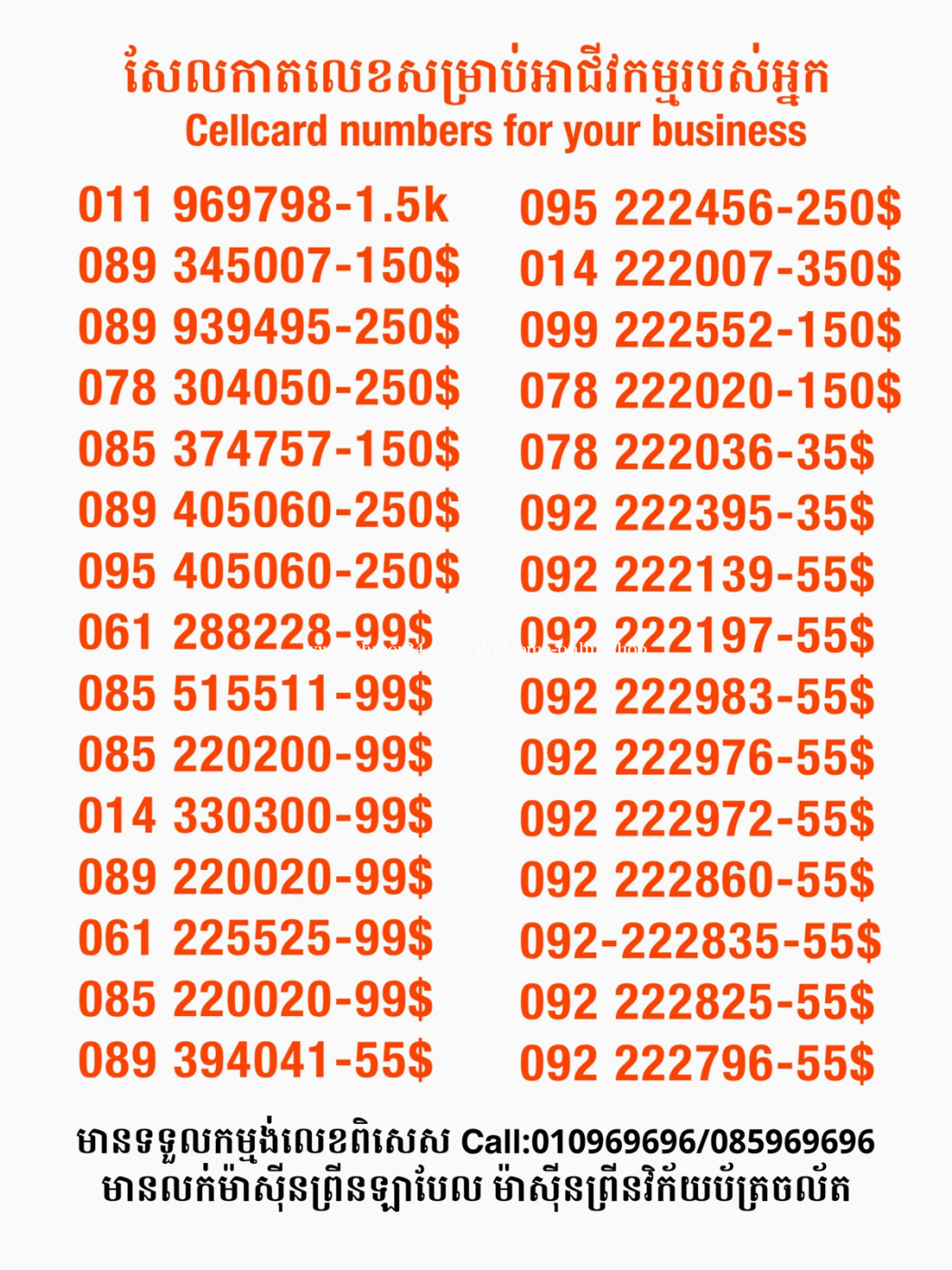 មានលក់លេខពិសេស មានទទួលកម្មង់លេខពិសេស មានលក់ម៉ាស៊ីនព្រីនឡាបែលចល័ត មានលក់ម៉ាស៊ីនព្រីនវិក័យប័ត្រចល័ត មានលក់សម្ភារៈប្រើប្រាស់ក្នុងគ្រួសារ Smart Prime II 1=30$ Smart hero 1=40$ ទូរសព្ទថ្មីក្នុងប្រអប់ លក់ធូរៗរហូតអស់ពីស្តុក អាចប្រើជាឧបករណ៍សម្រាប់ស៊ែរ wifi បាន ទំនាក់ទំនង(ខ្មែរ | English | 中文):010969696 | 085969696 Telegram: https://t.me/W9696 Telegram group: https://t.me/konkonnada អាសយដ្ឋាន:ផ្ទះលេខ២៣ ផ្លូវបេតុងលេខ១ ភូមិទួលពង្រ សង្កាត់ចោមចៅ ខណ្ឌពោធិ៍សែនជ័យ រាជធានីភ្នំពេញ ទីតាំង https://goo.gl/maps/8moqW4iTHUfJEvWQ9 ដើម្បីស្វែងរកលេខអាជីវកម្មដែលលោកអ្នកពេញចិត្ត សូមចូលទៅកាន់:https://www.khmer24.com/Welcome-onlineshop