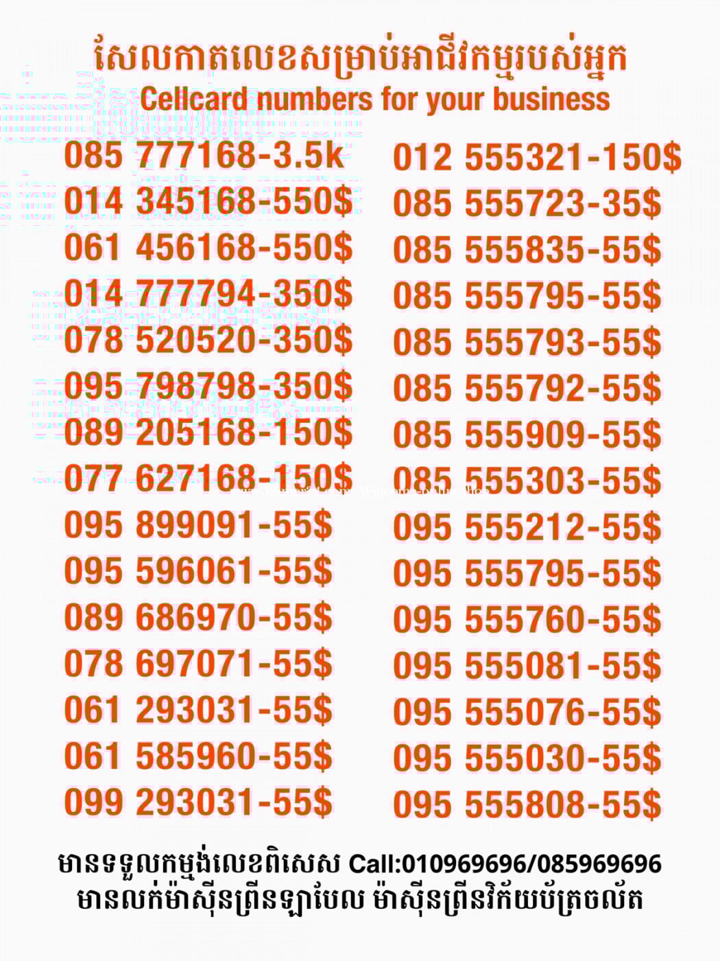 មានលក់លេខពិសេស មានទទួលកម្មង់លេខពិសេស មានលក់ម៉ាស៊ីនព្រីនឡាបែលចល័ត មានលក់ម៉ាស៊ីនព្រីនវិក័យប័ត្រចល័ត មានលក់សម្ភារៈប្រើប្រាស់ក្នុងគ្រួសារ Smart Prime II 1=30$ Smart hero 1=40$ ទូរសព្ទថ្មីក្នុងប្រអប់ លក់ធូរៗរហូតអស់ពីស្តុក អាចប្រើជាឧបករណ៍សម្រាប់ស៊ែរ wifi បាន ទំនាក់ទំនង(ខ្មែរ | English | 中文):010969696 | 085969696 Telegram: https://t.me/W9696 Telegram group: https://t.me/konkonnada អាសយដ្ឋាន:ផ្ទះលេខ២៣ ផ្លូវបេតុងលេខ១ ភូមិទួលពង្រ សង្កាត់ចោមចៅ ខណ្ឌពោធិ៍សែនជ័យ រាជធានីភ្នំពេញ ទីតាំង https://goo.gl/maps/8moqW4iTHUfJEvWQ9 ដើម្បីស្វែងរកលេខអាជីវកម្មដែលលោកអ្នកពេញចិត្ត សូមចូលទៅកាន់:https://www.khmer24.com/Welcome-onlineshop