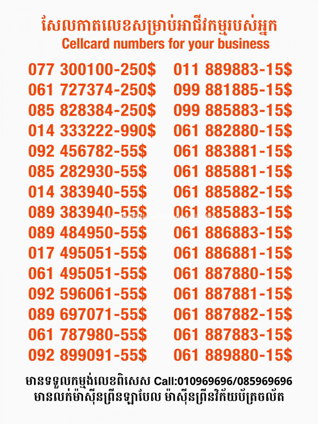 មានលក់លេខពិសេស មានទទួលកម្មង់លេខពិសេស មានលក់ម៉ាស៊ីនព្រីនឡាបែលចល័ត មានលក់ម៉ាស៊ីនព្រីនវិក័យប័ត្រចល័ត មានលក់សម្ភារៈប្រើប្រាស់ក្នុងគ្រួសារ Smart Prime II 1=30$ Smart hero 1=40$ ទូរសព្ទថ្មីក្នុងប្រអប់ លក់ធូរៗរហូតអស់ពីស្តុក អាចប្រើជាឧបករណ៍សម្រាប់ស៊ែរ wifi បាន ទំនាក់ទំនង(ខ្មែរ | English | 中文):010969696 | 085969696 Telegram: https://t.me/W9696 Telegram group: https://t.me/konkonnada អាសយដ្ឋាន:ផ្ទះលេខ២៣ ផ្លូវបេតុងលេខ១ ភូមិទួលពង្រ សង្កាត់ចោមចៅ ខណ្ឌពោធិ៍សែនជ័យ រាជធានីភ្នំពេញ ទីតាំង https://goo.gl/maps/8moqW4iTHUfJEvWQ9 ដើម្បីស្វែងរកលេខអាជីវកម្មដែលលោកអ្នកពេញចិត្ត សូមចូលទៅកាន់:https://www.khmer24.com/Welcome-onlineshop
