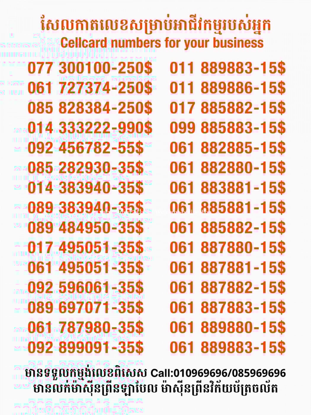 មានលក់លេខពិសេស មានទទួលកម្មង់លេខពិសេស មានលក់ម៉ាស៊ីនព្រីនឡាបែលចល័ត មានលក់ម៉ាស៊ីនព្រីនវិក័យប័ត្រចល័ត មានលក់សម្ភារៈប្រើប្រាស់ក្នុងគ្រួសារ Smart Prime II 1=30$ Smart hero 1=40$ ទូរសព្ទថ្មីក្នុងប្រអប់ លក់ធូរៗរហូតអស់ពីស្តុក អាចប្រើជាឧបករណ៍សម្រាប់ស៊ែរ wifi បាន ទំនាក់ទំនង(ខ្មែរ | English | 中文):010969696 | 085969696 Telegram: https://t.me/W9696 Telegram group: https://t.me/konkonnada អាសយដ្ឋាន:ផ្ទះលេខ២៣ ផ្លូវបេតុងលេខ១ ភូមិទួលពង្រ សង្កាត់ចោមចៅ ខណ្ឌពោធិ៍សែនជ័យ រាជធានីភ្នំពេញ ទីតាំង https://goo.gl/maps/8moqW4iTHUfJEvWQ9 ដើម្បីស្វែងរកលេខអាជីវកម្មដែលលោកអ្នកពេញចិត្ត សូមចូលទៅកាន់:https://www.khmer24.com/Welcome-onlineshop