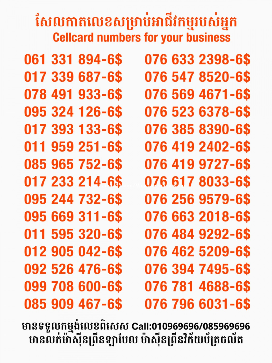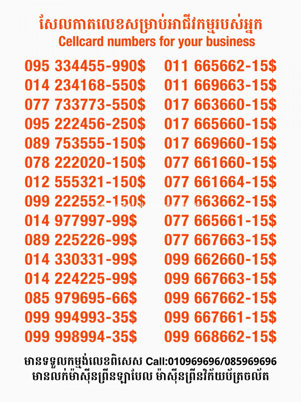 មានលក់លេខពិសេស មានទទួលកម្មង់លេខពិសេស មានលក់ម៉ាស៊ីនព្រីនឡាបែលចល័ត មានលក់ម៉ាស៊ីនព្រីនវិក័យប័ត្រចល័ត មានលក់សម្ភារៈប្រើប្រាស់ក្នុងគ្រួសារ Smart Prime II 1=30$ Smart hero 1=40$ ទូរសព្ទថ្មីក្នុងប្រអប់ លក់ធូរៗរហូតអស់ពីស្តុក អាចប្រើជាឧបករណ៍សម្រាប់ស៊ែរ wifi បាន ទំនាក់ទំនង(ខ្មែរ | English | 中文):010969696 | 085969696 Telegram: https://t.me/W9696 Telegram group: https://t.me/konkonnada អាសយដ្ឋាន:ផ្ទះលេខ២៣ ផ្លូវបេតុងលេខ១ ភូមិទួលពង្រ សង្កាត់ចោមចៅ ខណ្ឌពោធិ៍សែនជ័យ រាជធានីភ្នំពេញ ទីតាំង https://goo.gl/maps/8moqW4iTHUfJEvWQ9 ដើម្បីស្វែងរកលេខអាជីវកម្មដែលលោកអ្នកពេញចិត្ត សូមចូលទៅកាន់:https://www.khmer24.com/Welcome-onlineshop
