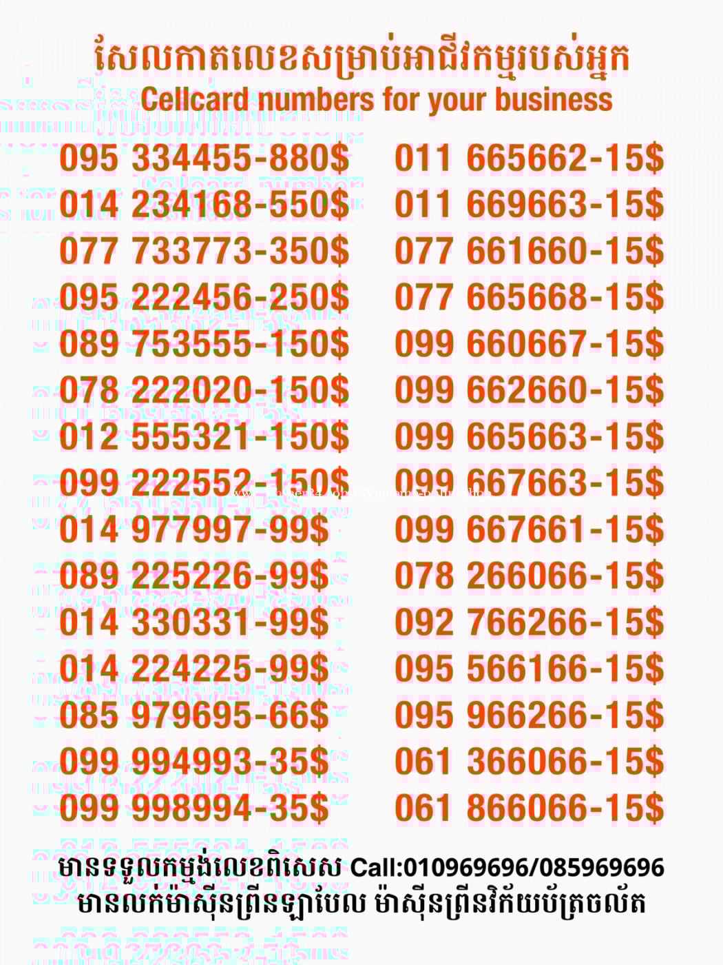 មានលក់លេខពិសេស មានទទួលកម្មង់លេខពិសេស មានលក់ម៉ាស៊ីនព្រីនឡាបែល មានលក់ម៉ាស៊ីនព្រីនវិក័យប័ត្រ មានលក់សម្ភារៈប្រើប្រាស់ក្នុងគ្រួសារ Smart Prime II 1=30$ Smart hero 1=40$ ទូរសព្ទថ្មីក្នុងប្រអប់ លក់ធូរៗរហូតអស់ពីស្តុក អាចប្រើជាឧបករណ៍សម្រាប់ស៊ែរ wifi បាន ទំនាក់ទំនង(ខ្មែរ | English | 中文):010969696 | 085969696 Telegram: https://t.me/W9696 Telegram group: https://t.me/konkonnada អាសយដ្ឋាន:ផ្ទះលេខ២៣ ផ្លូវបេតុងលេខ១ ភូមិទួលពង្រ សង្កាត់ចោមចៅ ខណ្ឌពោធិ៍សែនជ័យ រាជធានីភ្នំពេញ ទីតាំង https://goo.gl/maps/8moqW4iTHUfJEvWQ9 ដើម្បីស្វែងរកលេខអាជីវកម្មដែលលោកអ្នកពេញចិត្ត សូមចូលទៅកាន់:https://www.khmer24.com/Welcome-onlineshop