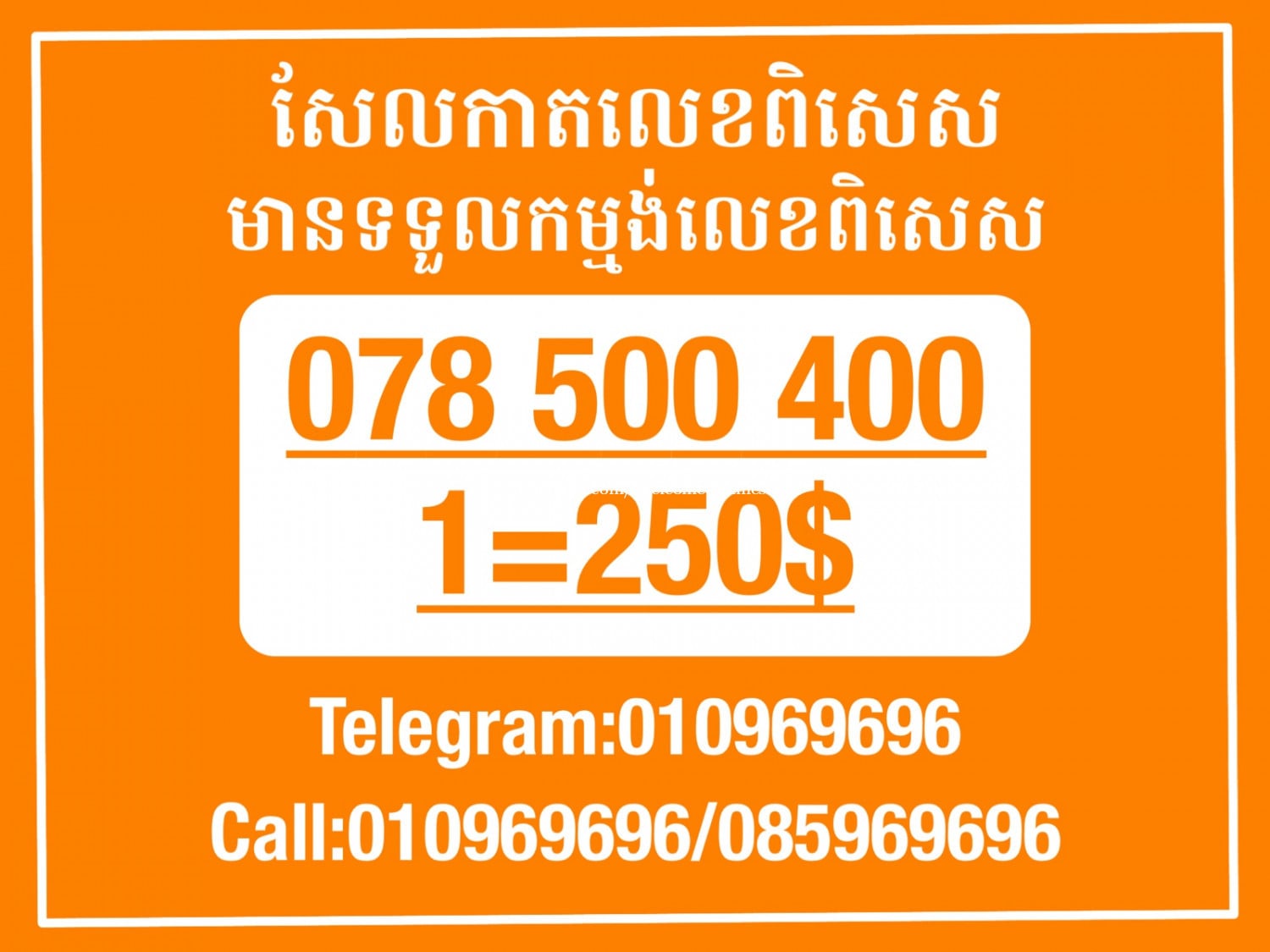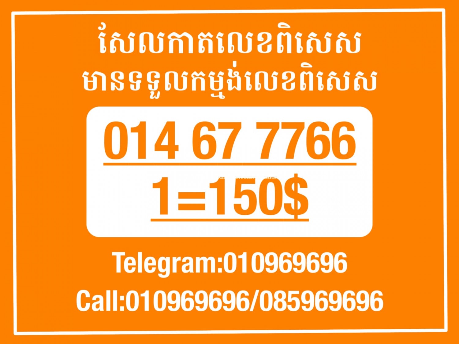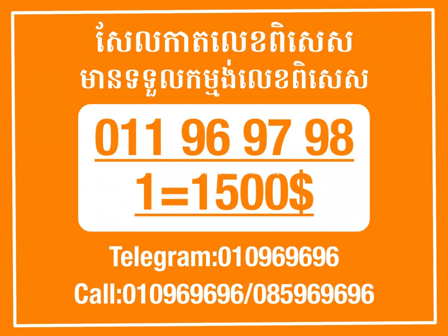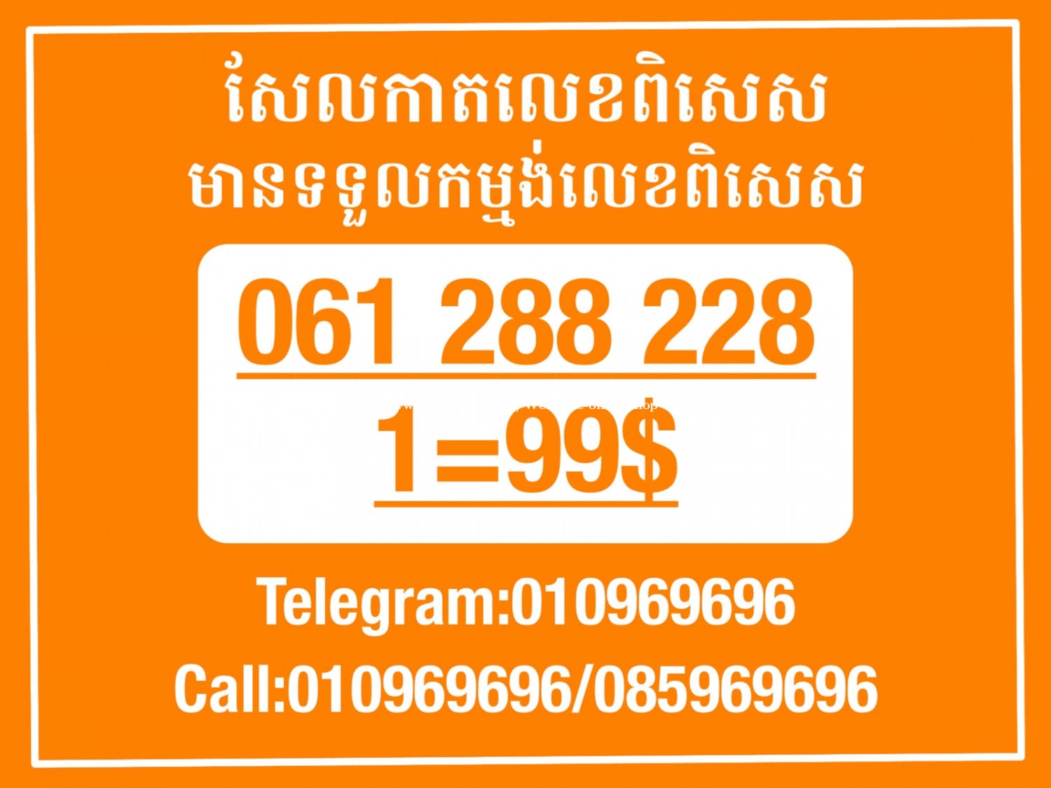 មានលក់លេខពិសេស មានទទួលកម្មង់លេខពិសេស មានលក់ម៉ាស៊ីនព្រីនឡាបែល មានលក់ម៉ាស៊ីនព្រីនវិក័យប័ត្រ មានលក់សម្ភារៈប្រើប្រាស់ក្នុងគ្រួសារ Smart Prime II 1=30$ Smart hero 1=40$ ទូរសព្ទថ្មីក្នុងប្រអប់ លក់ធូរៗរហូតអស់ពីស្តុក អាចប្រើជាឧបករណ៍សម្រាប់ស៊ែរ wifi បាន ទំនាក់ទំនង(ខ្មែរ | English | 中文):010969696 | 085969696 Telegram: https://t.me/W9696 Telegram group: https://t.me/konkonnada អាសយដ្ឋាន:ផ្ទះលេខ២៣ ផ្លូវបេតុងលេខ១ ភូមិទួលពង្រ សង្កាត់ចោមចៅ ខណ្ឌពោធិ៍សែនជ័យ រាជធានីភ្នំពេញ ទីតាំង https://goo.gl/maps/8moqW4iTHUfJEvWQ9 ដើម្បីស្វែងរកលេខអាជីវកម្មដែលលោកអ្នកពេញចិត្ត សូមចូលទៅកាន់:https://www.khmer24.com/Welcome-onlineshop