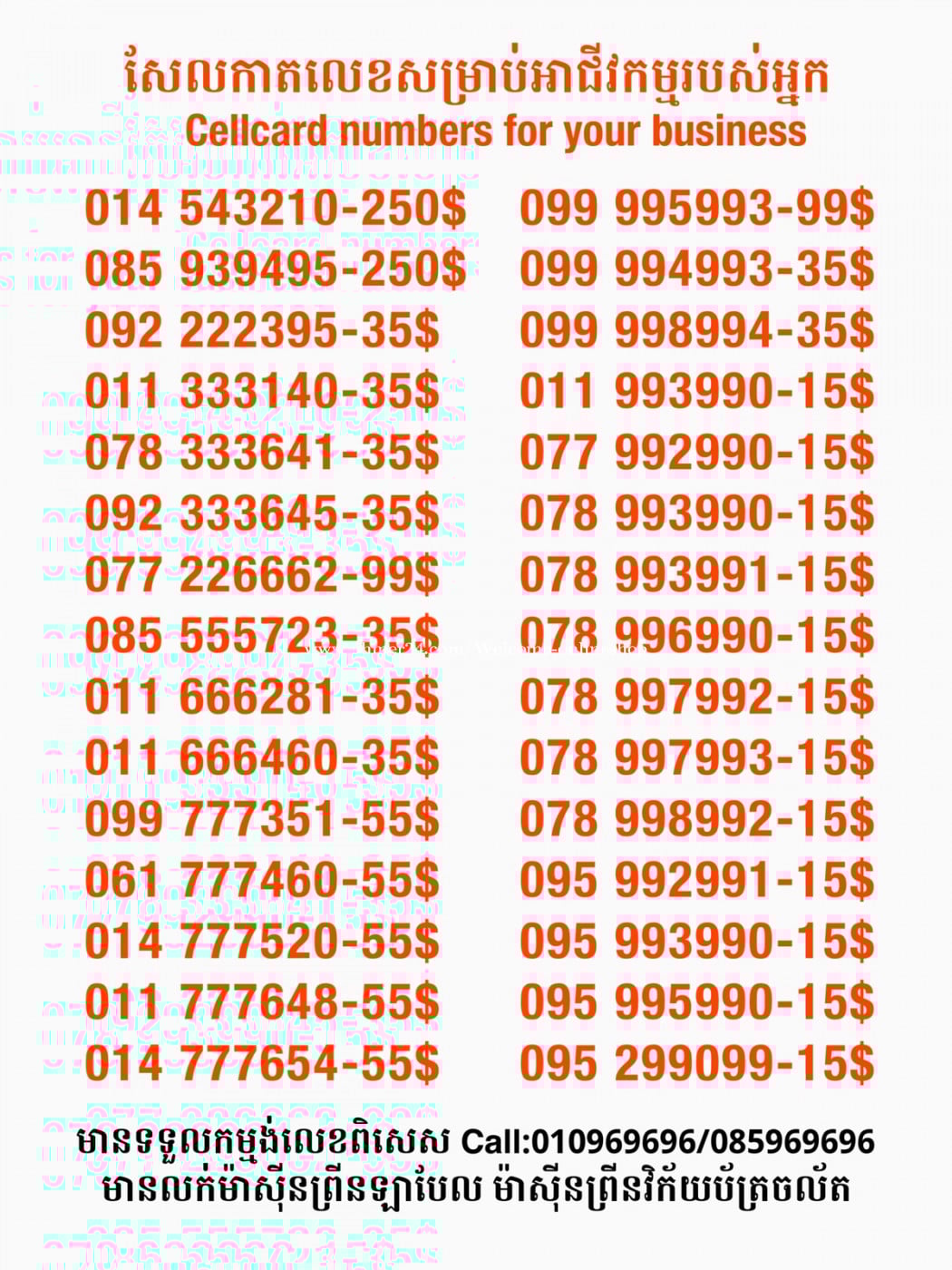 មានលក់លេខពិសេស មានទទួលកម្មង់លេខពិសេស មានលក់ម៉ាស៊ីនព្រីនឡាបែល មានលក់ម៉ាស៊ីនព្រីនវិក័យប័ត្រ មានលក់សម្ភារៈប្រើប្រាស់ក្នុងគ្រួសារ Smart Prime II 1=30$ Smart hero 1=40$ ទូរសព្ទថ្មីក្នុងប្រអប់ លក់ធូរៗរហូតអស់ពីស្តុក អាចប្រើជាឧបករណ៍សម្រាប់ស៊ែរ wifi បាន ទំនាក់ទំនង(ខ្មែរ | English | 中文):010969696 | 085969696 Telegram: https://t.me/W9696 Telegram group: https://t.me/konkonnada អាសយដ្ឋាន:ផ្ទះលេខ២៣ ផ្លូវបេតុងលេខ១ ភូមិទួលពង្រ សង្កាត់ចោមចៅ ខណ្ឌពោធិ៍សែនជ័យ រាជធានីភ្នំពេញ ទីតាំង https://goo.gl/maps/8moqW4iTHUfJEvWQ9 ដើម្បីស្វែងរកលេខអាជីវកម្មដែលលោកអ្នកពេញចិត្ត សូមចូលទៅកាន់:https://www.khmer24.com/Welcome-onlineshop