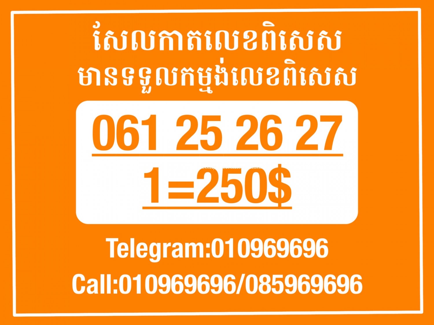មានលក់លេខពិសេស មានទទួលកម្មង់លេខពិសេស មានលក់ម៉ាស៊ីនព្រីនឡាបែល មានលក់ម៉ាស៊ីនព្រីនវិក័យប័ត្រ មានលក់សម្ភារៈប្រើប្រាស់ក្នុងគ្រួសារ Smart Prime II 1=30$ Smart hero 1=40$ ទូរសព្ទថ្មីក្នុងប្រអប់ លក់ធូរៗរហូតអស់ពីស្តុក អាចប្រើជាឧបករណ៍សម្រាប់ស៊ែរ wifi បាន ទំនាក់ទំនង(ខ្មែរ | English | 中文):010969696 | 085969696 Telegram: https://t.me/W9696 Telegram group: https://t.me/konkonnada អាសយដ្ឋាន:ផ្ទះលេខ២៣ ផ្លូវបេតុងលេខ១ ភូមិទួលពង្រ សង្កាត់ចោមចៅ ខណ្ឌពោធិ៍សែនជ័យ រាជធានីភ្នំពេញ ទីតាំង https://goo.gl/maps/8moqW4iTHUfJEvWQ9 ដើម្បីស្វែងរកលេខអាជីវកម្មដែលលោកអ្នកពេញចិត្ត សូមចូលទៅកាន់:https://www.khmer24.com/Welcome-onlineshop
