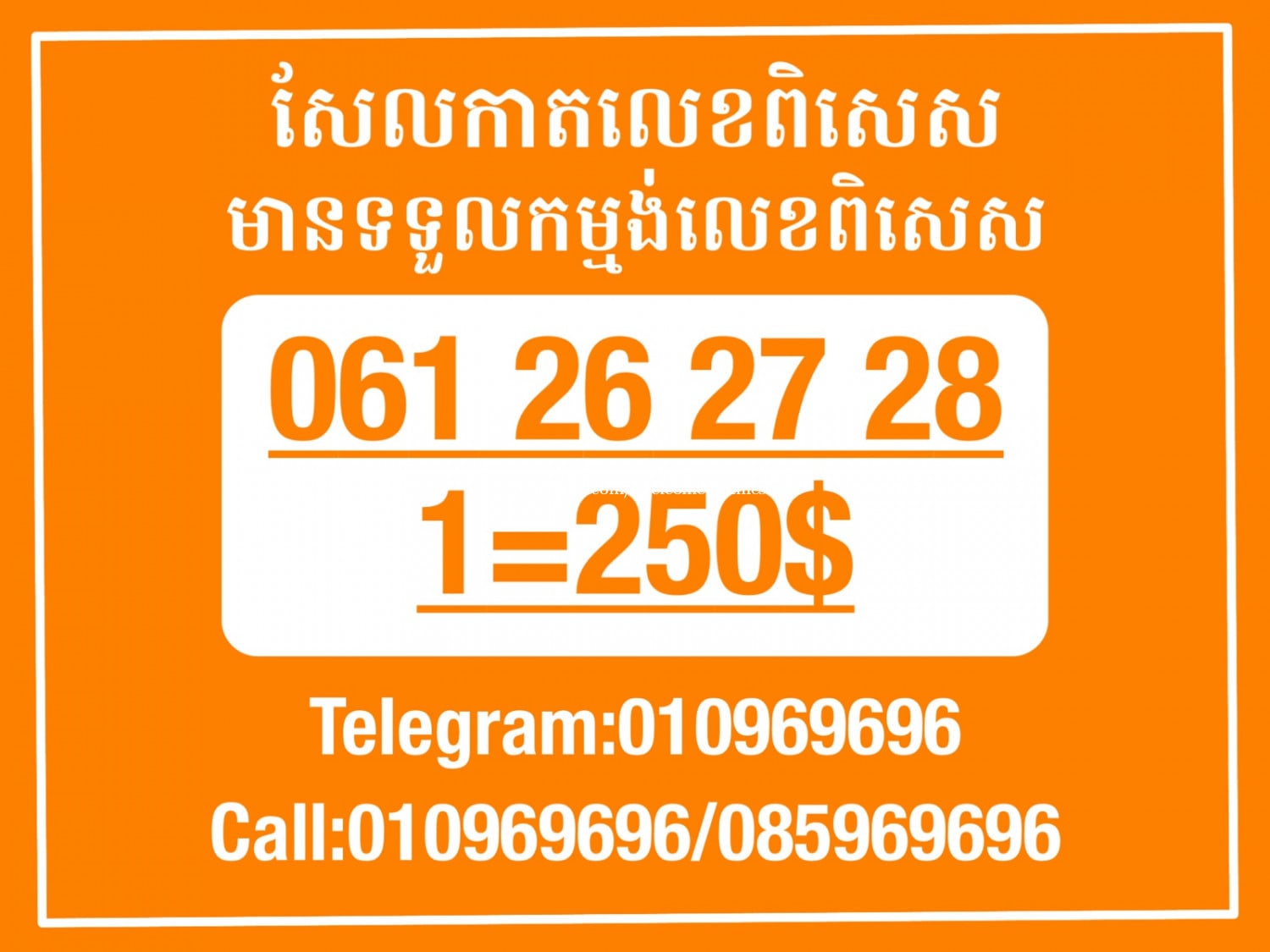 មានលក់លេខពិសេស មានទទួលកម្មង់លេខពិសេស មានលក់ម៉ាស៊ីនព្រីនឡាបែល មានលក់ម៉ាស៊ីនព្រីនវិក័យប័ត្រ មានលក់សម្ភារៈប្រើប្រាស់ក្នុងគ្រួសារ Smart Prime II 1=30$ Smart hero 1=40$ ទូរសព្ទថ្មីក្នុងប្រអប់ លក់ធូរៗរហូតអស់ពីស្តុក អាចប្រើជាឧបករណ៍សម្រាប់ស៊ែរ wifi បាន ទំនាក់ទំនង(ខ្មែរ | English | 中文):010969696 | 085969696 Telegram: https://t.me/W9696 Telegram group: https://t.me/konkonnada អាសយដ្ឋាន:ផ្ទះលេខ២៣ ផ្លូវបេតុងលេខ១ ភូមិទួលពង្រ សង្កាត់ចោមចៅ ខណ្ឌពោធិ៍សែនជ័យ រាជធានីភ្នំពេញ ទីតាំង https://goo.gl/maps/8moqW4iTHUfJEvWQ9 ដើម្បីស្វែងរកលេខអាជីវកម្មដែលលោកអ្នកពេញចិត្ត សូមចូលទៅកាន់:https://www.khmer24.com/Welcome-onlineshop