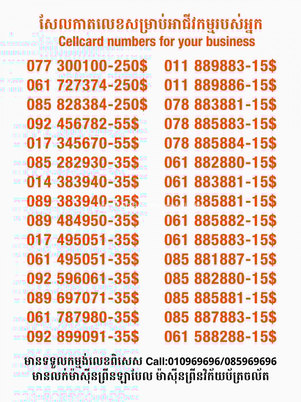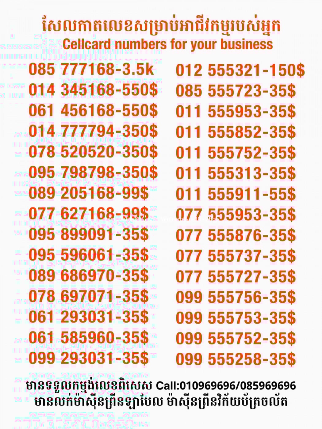 មានលក់លេខពិសេស មានទទួលកម្មង់លេខពិសេស មានលក់ម៉ាស៊ីនព្រីនឡាបែល មានលក់ម៉ាស៊ីនព្រីនវិក័យប័ត្រ មានលក់សម្ភារៈប្រើប្រាស់ក្នុងគ្រួសារ Smart Prime II 1=30$ Smart hero 1=40$ ទូរសព្ទថ្មីក្នុងប្រអប់ លក់ធូរៗរហូតអស់ពីស្តុក អាចប្រើជាឧបករណ៍សម្រាប់ស៊ែរ wifi បាន ទំនាក់ទំនង(ខ្មែរ | English | 中文):010969696 | 085969696 Telegram: https://t.me/W9696 Telegram group: https://t.me/konkonnada អាសយដ្ឋាន:ផ្ទះលេខ២៣ ផ្លូវបេតុងលេខ១ ភូមិទួលពង្រ សង្កាត់ចោមចៅ ខណ្ឌពោធិ៍សែនជ័យ រាជធានីភ្នំពេញ ទីតាំង https://goo.gl/maps/8moqW4iTHUfJEvWQ9 ដើម្បីស្វែងរកលេខអាជីវកម្មដែលលោកអ្នកពេញចិត្ត សូមចូលទៅកាន់:https://www.khmer24.com/Welcome-onlineshop