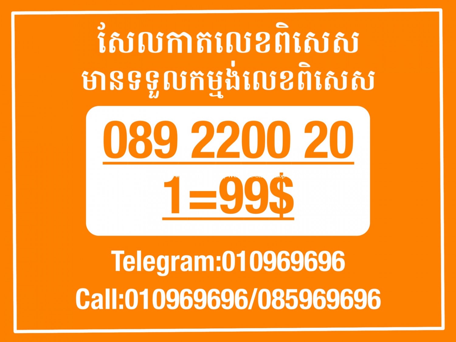 មានលក់លេខពិសេស មានទទួលកម្មង់លេខពិសេស មានលក់ម៉ាស៊ីនព្រីនឡាបែល មានលក់ម៉ាស៊ីនព្រីនវិក័យប័ត្រ មានលក់សម្ភារៈប្រើប្រាស់ក្នុងគ្រួសារ Smart Prime II 1=30$ Smart hero 1=40$ ទូរសព្ទថ្មីក្នុងប្រអប់ លក់ធូរៗរហូតអស់ពីស្តុក អាចប្រើជាឧបករណ៍សម្រាប់ស៊ែរ wifi បាន ទំនាក់ទំនង(ខ្មែរ | English | 中文):010969696 | 085969696 Telegram: https://t.me/W9696 Telegram group: https://t.me/konkonnada អាសយដ្ឋាន:ផ្ទះលេខ២៣ ផ្លូវបេតុងលេខ១ ភូមិទួលពង្រ សង្កាត់ចោមចៅ ខណ្ឌពោធិ៍សែនជ័យ រាជធានីភ្នំពេញ ទីតាំង https://goo.gl/maps/8moqW4iTHUfJEvWQ9 ដើម្បីស្វែងរកលេខអាជីវកម្មដែលលោកអ្នកពេញចិត្ត សូមចូលទៅកាន់:https://www.khmer24.com/Welcome-onlineshop