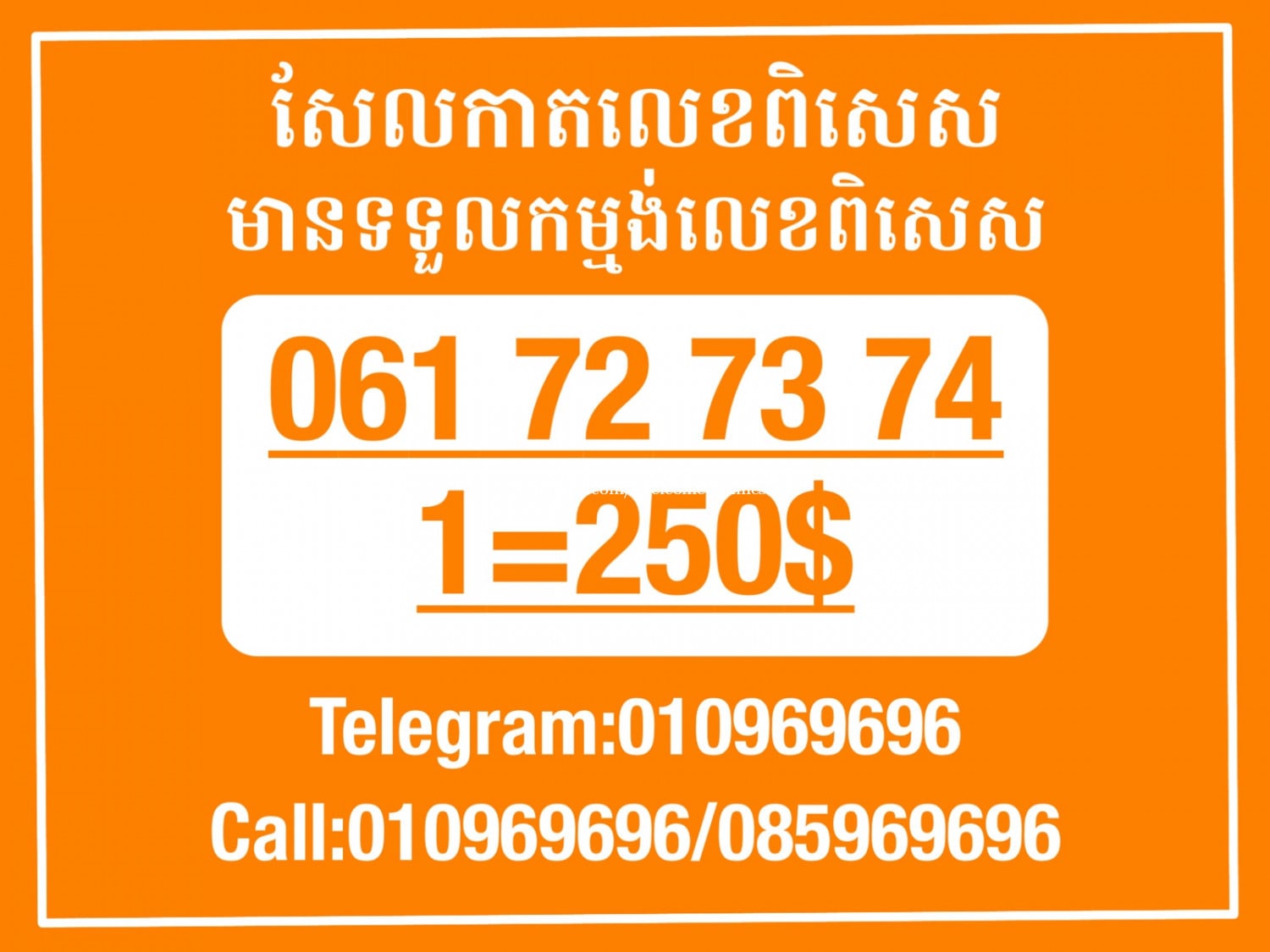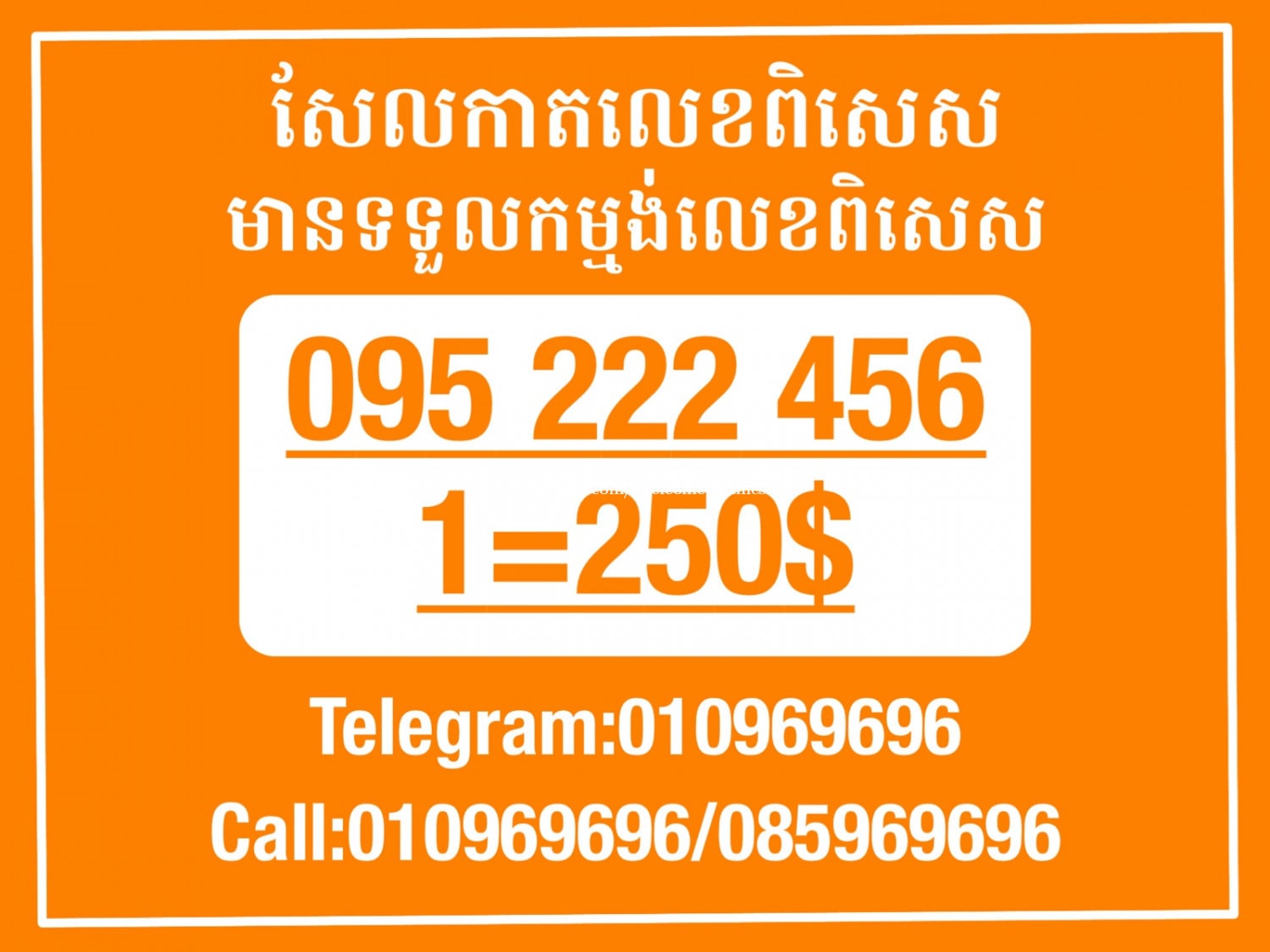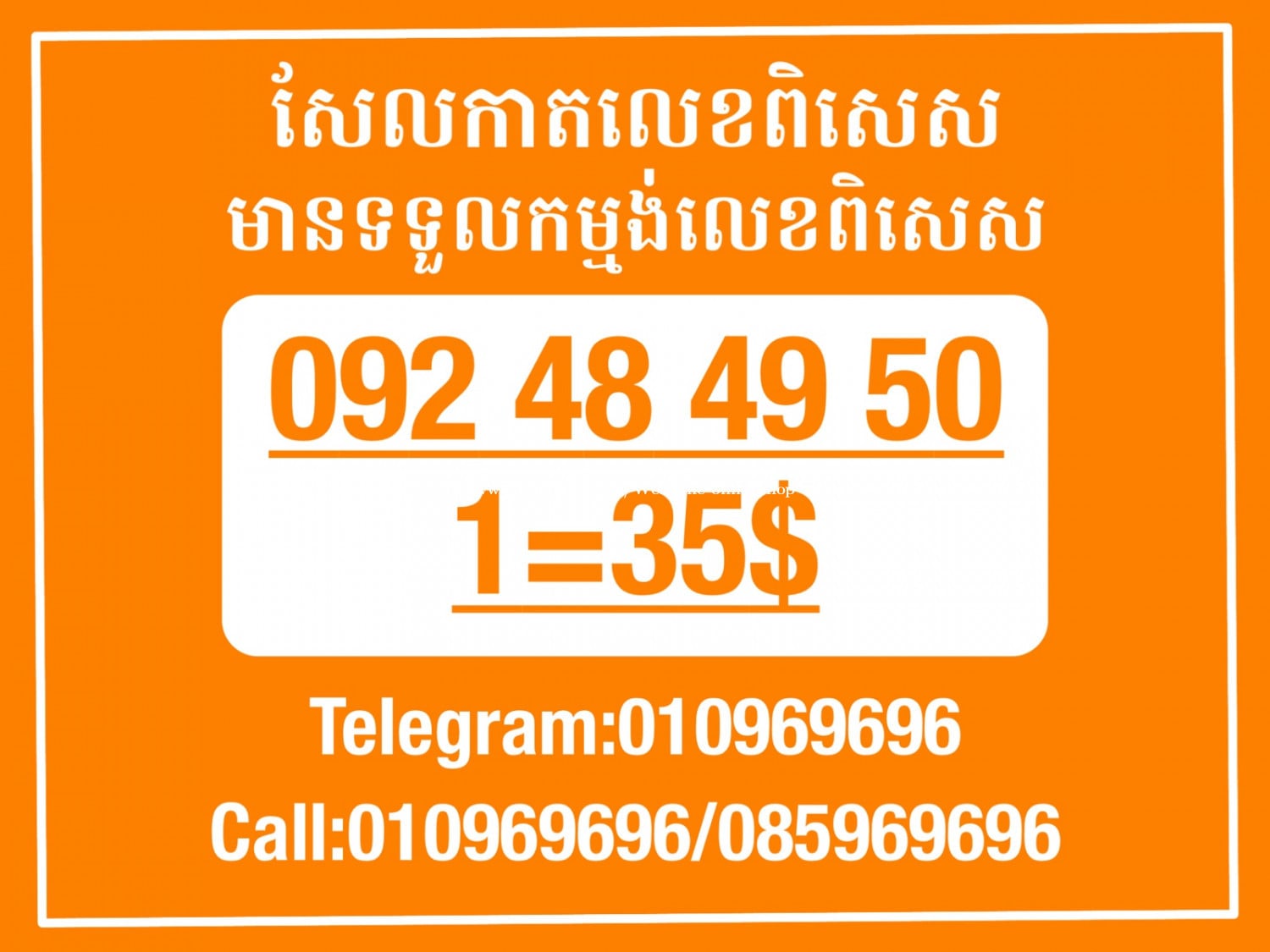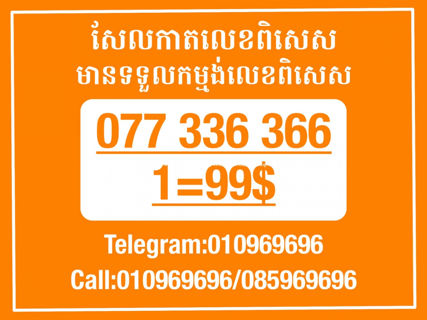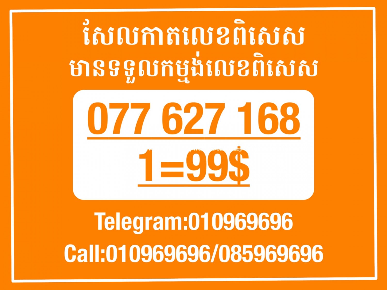 មានលក់លេខពិសេស មានទទួលកម្មង់លេខពិសេស មានលក់ម៉ាស៊ីនព្រីនឡាបែល មានលក់ម៉ាស៊ីនព្រីនវិក័យប័ត្រ មានលក់សម្ភារៈប្រើប្រាស់ក្នុងគ្រួសារ Smart Prime II 1=30$ Smart hero 1=40$ ទូរសព្ទថ្មីក្នុងប្រអប់ លក់ធូរៗរហូតអស់ពីស្តុក អាចប្រើជាឧបករណ៍សម្រាប់ស៊ែរ wifi បាន ទំនាក់ទំនង(ខ្មែរ | English | 中文):010969696 | 085969696 Telegram: https://t.me/W9696 Telegram group: https://t.me/konkonnada អាសយដ្ឋាន:ផ្ទះលេខ២៣ ផ្លូវបេតុងលេខ១ ភូមិទួលពង្រ សង្កាត់ចោមចៅ ខណ្ឌពោធិ៍សែនជ័យ រាជធានីភ្នំពេញ ទីតាំង https://goo.gl/maps/8moqW4iTHUfJEvWQ9 ដើម្បីស្វែងរកលេខអាជីវកម្មដែលលោកអ្នកពេញចិត្ត សូមចូលទៅកាន់:https://www.khmer24.com/Welcome-onlineshop