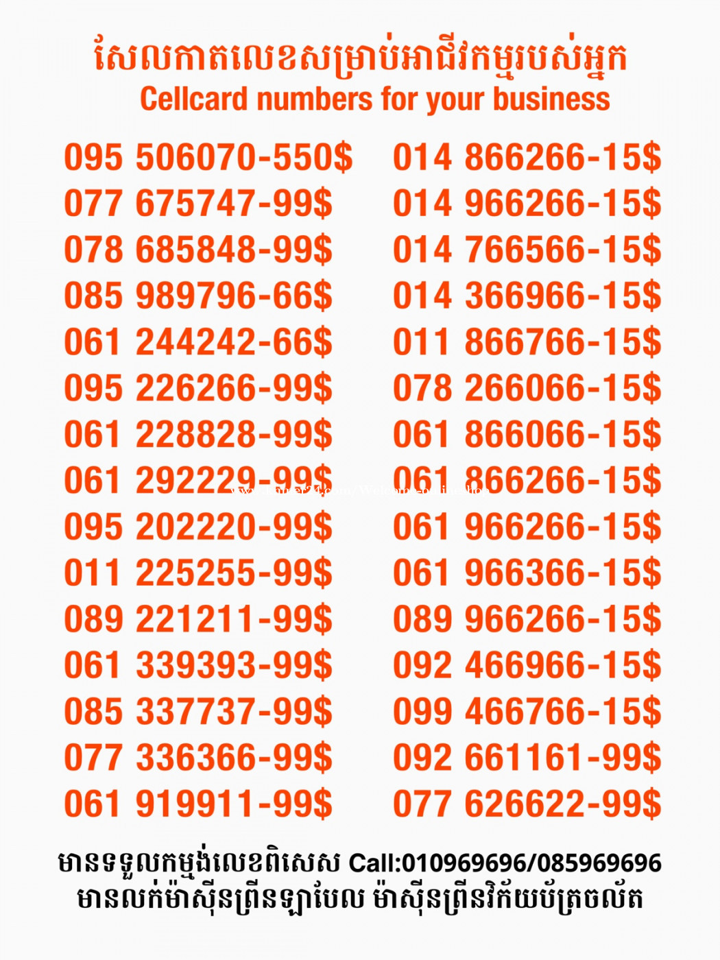 មានលក់លេខពិសេស មានទទួលកម្មង់លេខពិសេស មានលក់ម៉ាស៊ីនព្រីនឡាបែលចល័ត មានលក់ម៉ាស៊ីនព្រីនវិក័យប័ត្រចល័ត មានលក់សម្ភារៈប្រើប្រាស់ក្នុងគ្រួសារ Smart Prime II 1=30$ Smart hero 1=40$ ទូរសព្ទថ្មីក្នុងប្រអប់ លក់ធូរៗរហូតអស់ពីស្តុក អាចប្រើជាឧបករណ៍សម្រាប់ស៊ែរ wifi បាន ទំនាក់ទំនង(ខ្មែរ | English | 中文):010969696 | 085969696 Telegram: https://t.me/W9696 Telegram group: https://t.me/konkonnada អាសយដ្ឋាន:ផ្ទះលេខ២៣ ផ្លូវបេតុងលេខ១ ភូមិទួលពង្រ សង្កាត់ចោមចៅ ខណ្ឌពោធិ៍សែនជ័យ រាជធានីភ្នំពេញ ទីតាំង https://goo.gl/maps/8moqW4iTHUfJEvWQ9 ដើម្បីស្វែងរកលេខអាជីវកម្មដែលលោកអ្នកពេញចិត្ត សូមចូលទៅកាន់:https://www.khmer24.com/Welcome-onlineshop